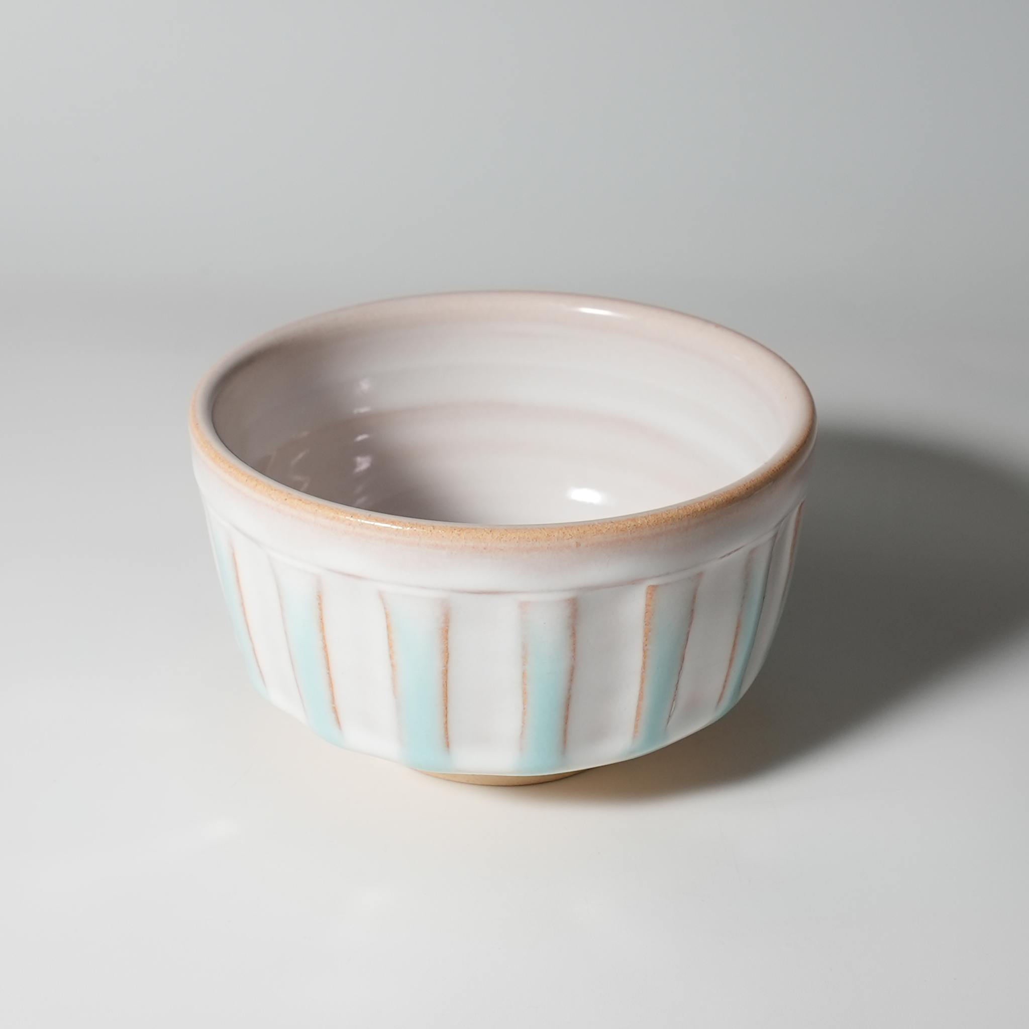 White glaze Ryokusai Matcha chawan Teabowl, Yasushi Okada. Japanese ceramic.