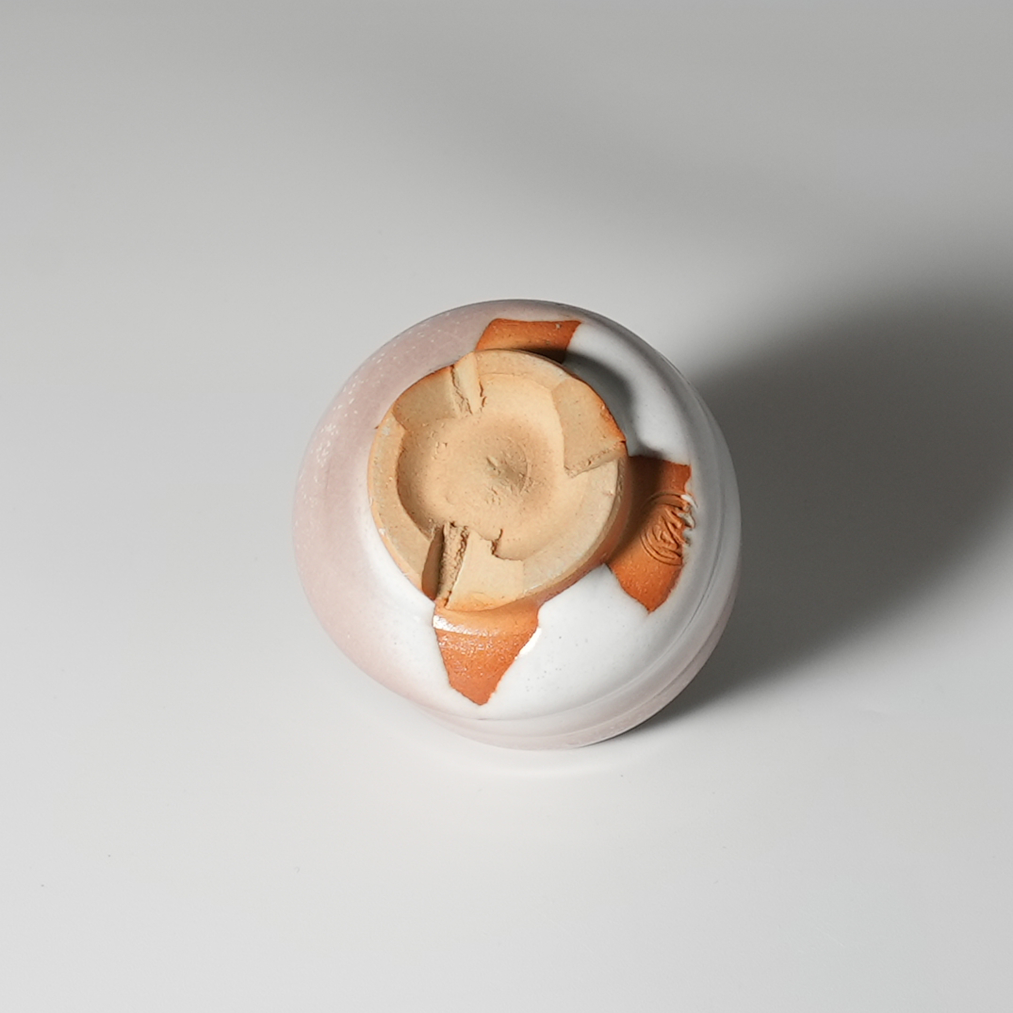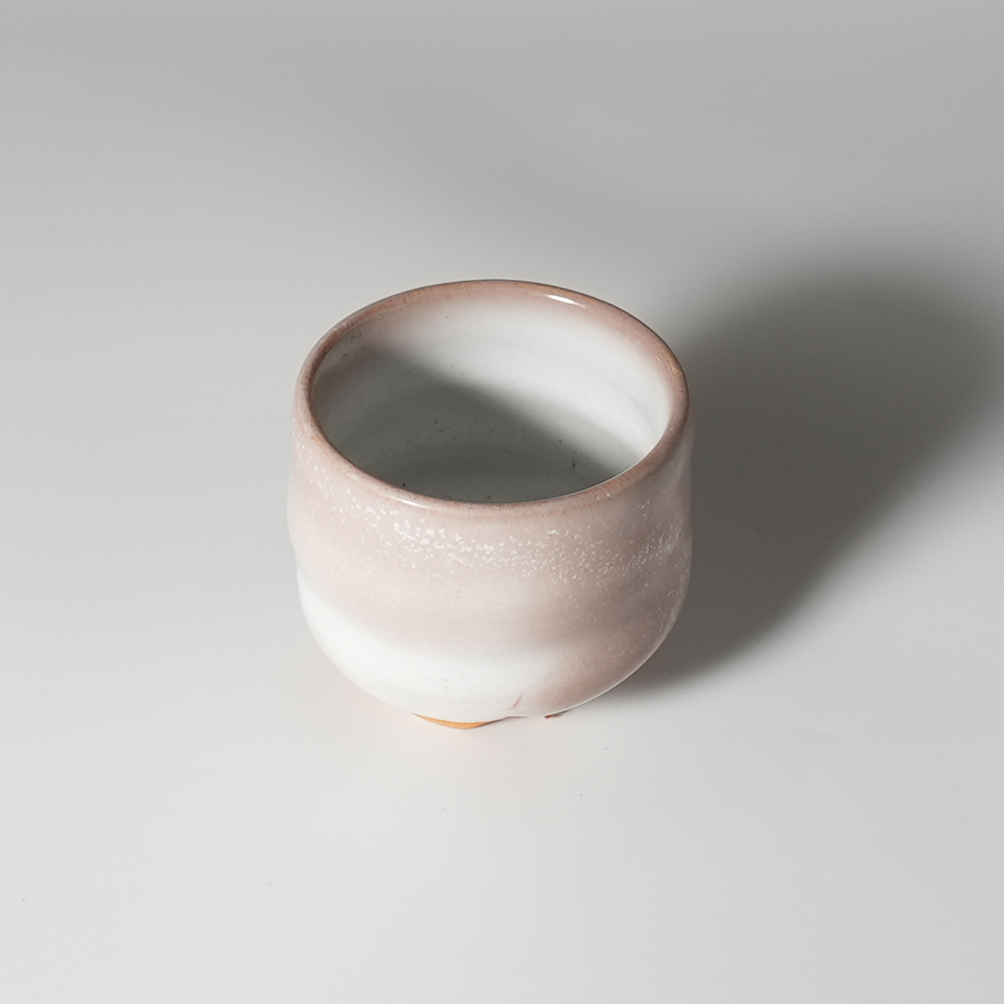 White Hagi yohen guinomi sake cup, wooden box. Yu Okada. Hagiyaki.