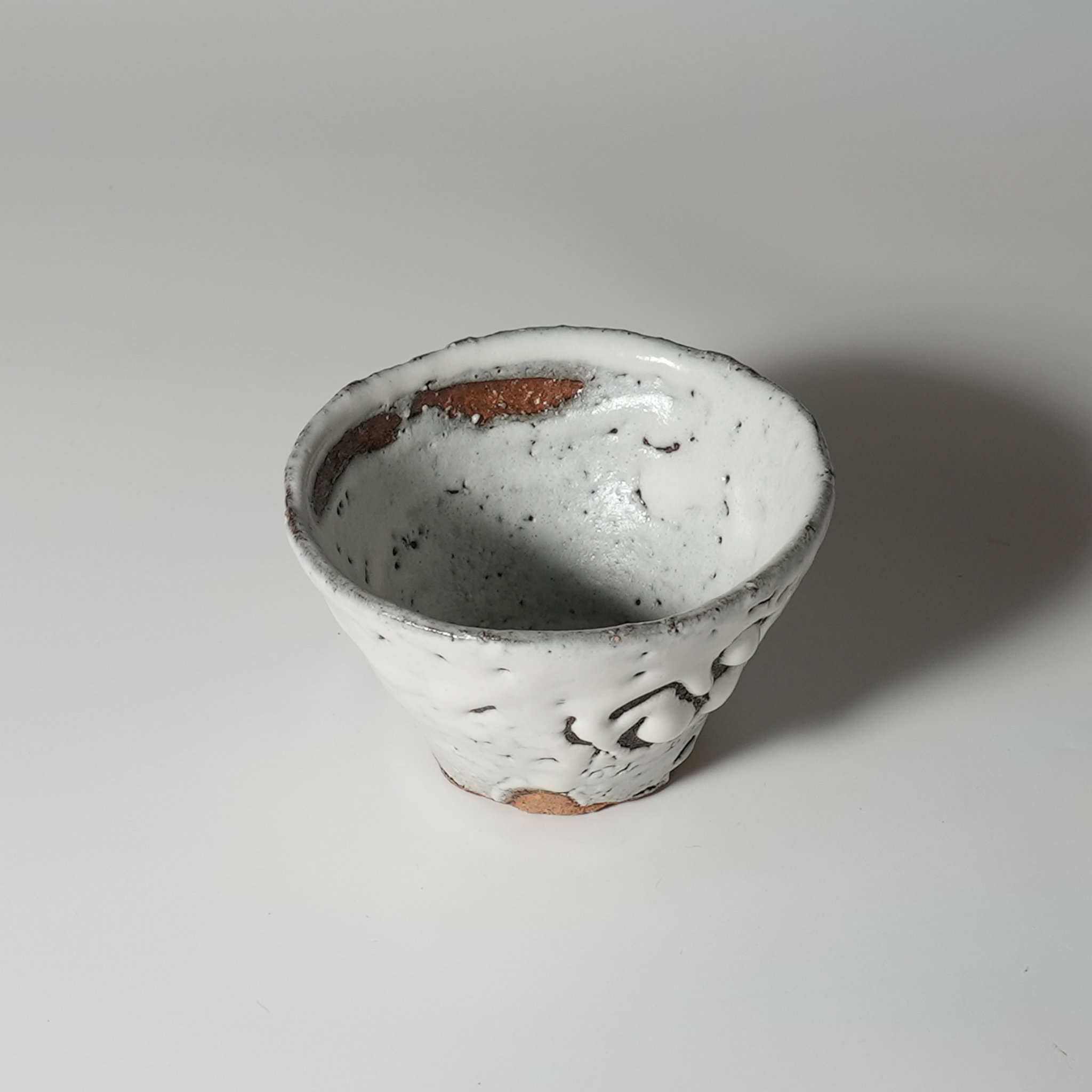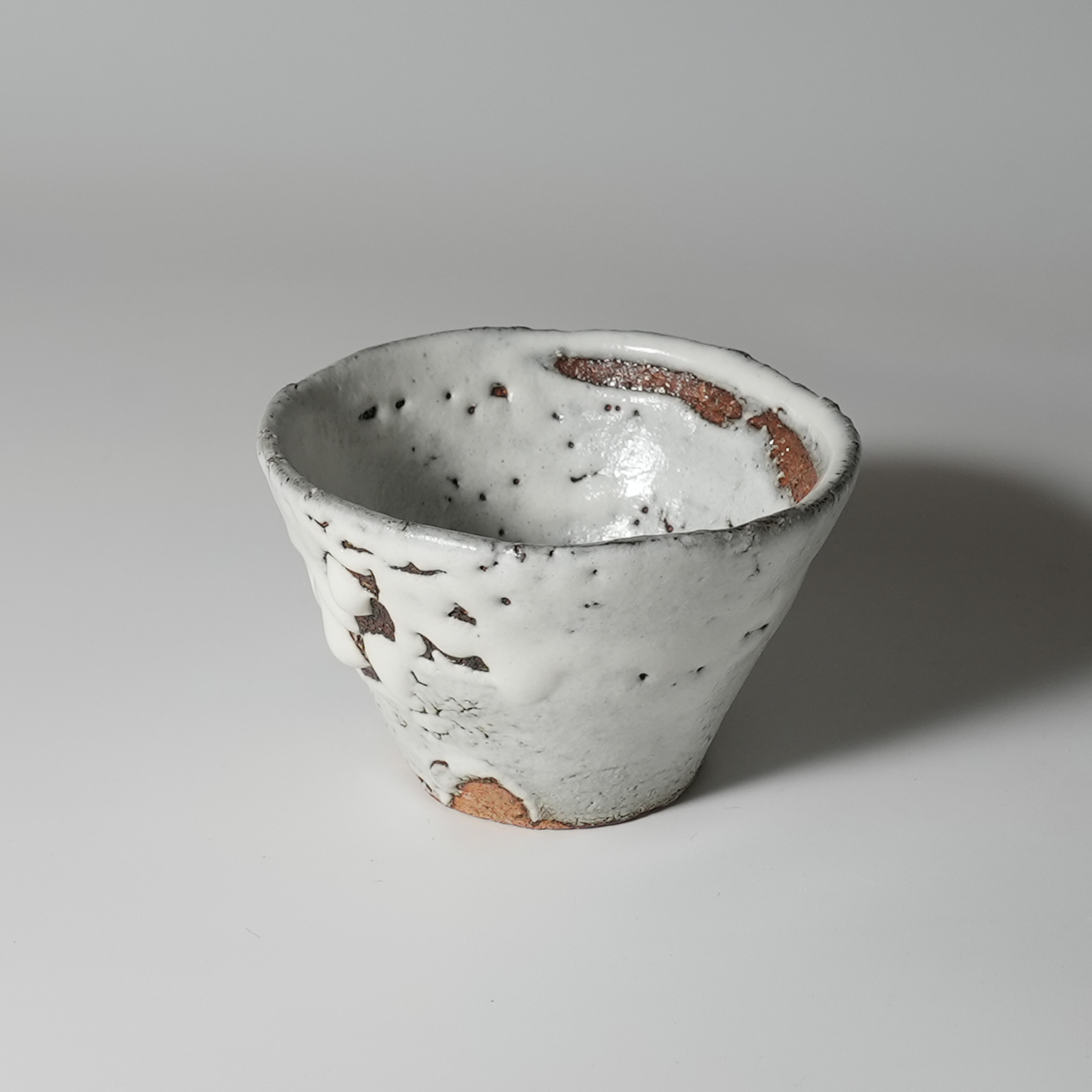 White hagi guinomi sake cup. Kazuyuki Suizu. Japanese pottery Hagiyaki.