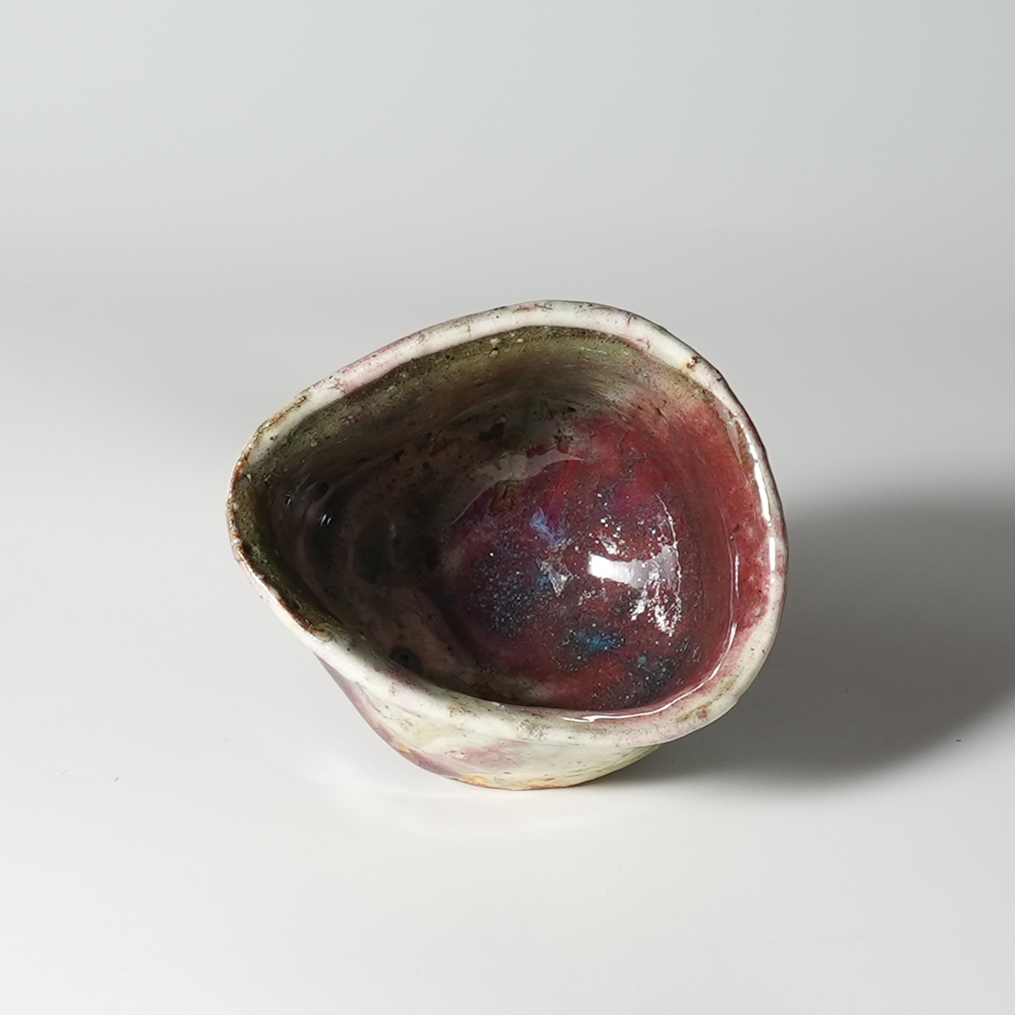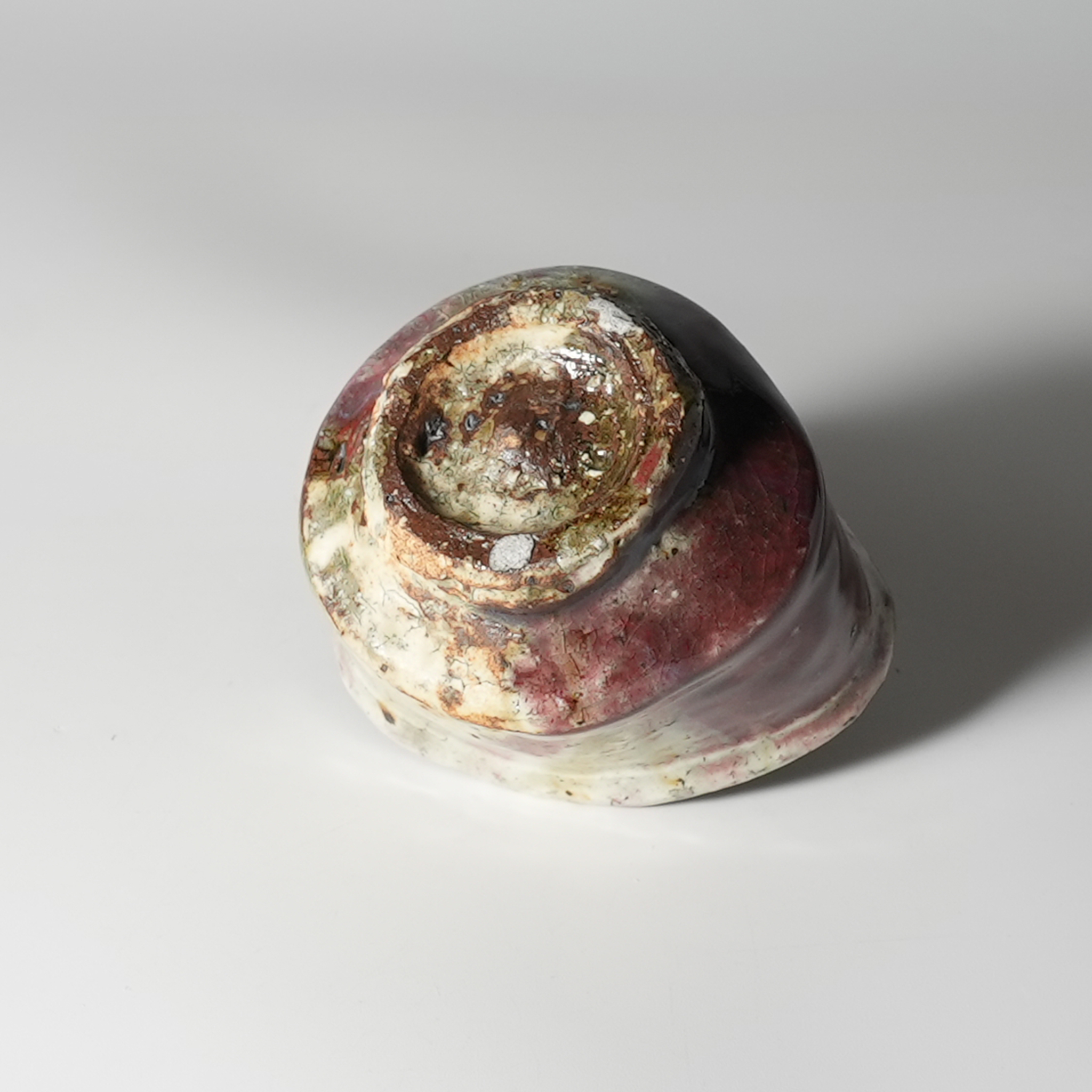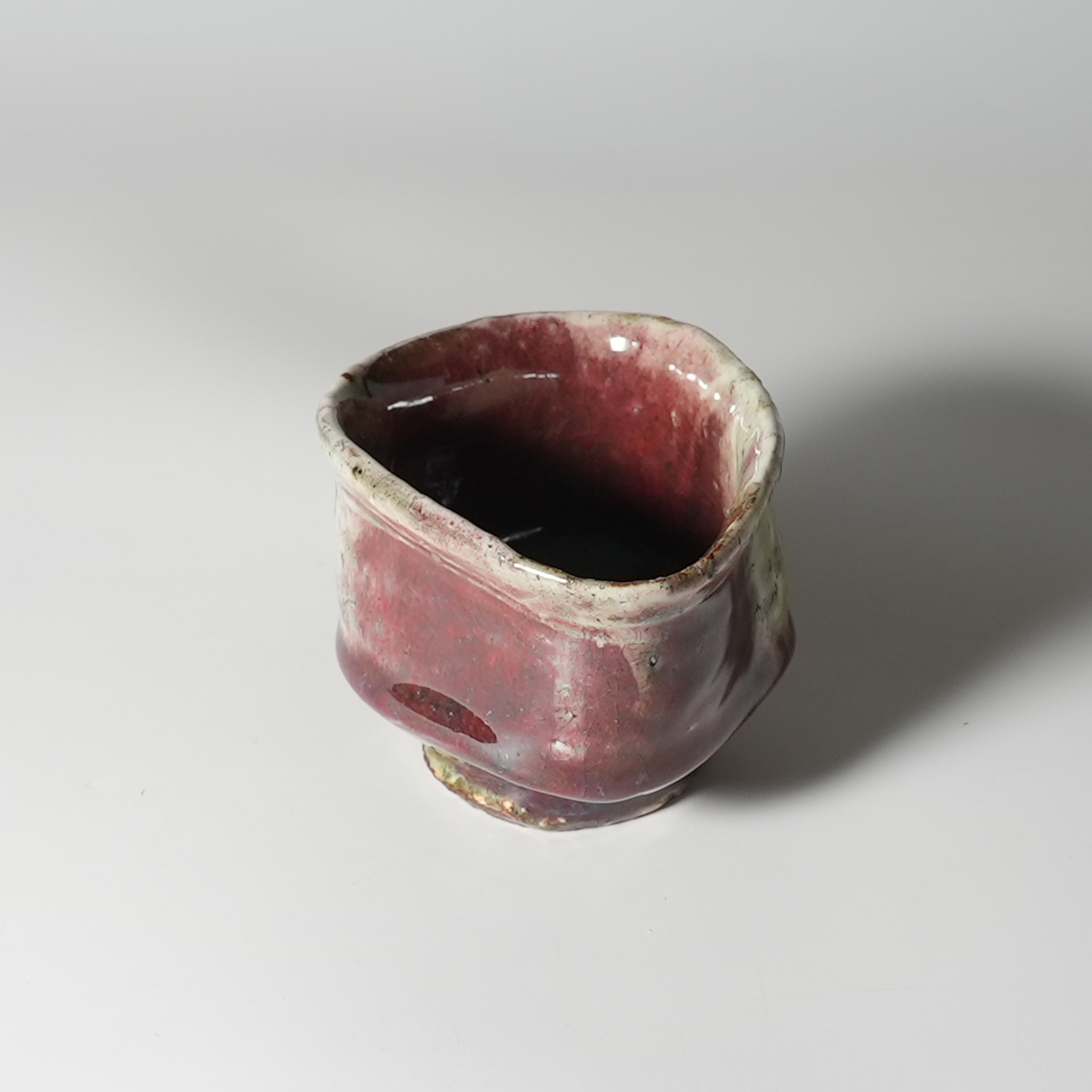 Shinsha red kohiki guinomi sake cup with wooden box. Keita Yamato. Hagiyaki.
