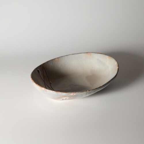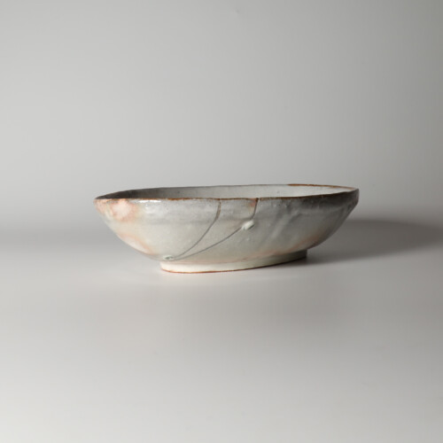 白釉筆滴楕円鉢 松野創平作 萩焼