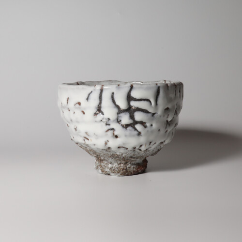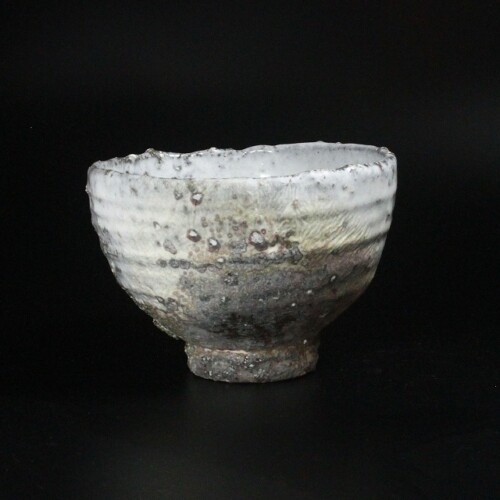 灰被白釉窯変刳貫茶碗 兼田昌尚 萩焼