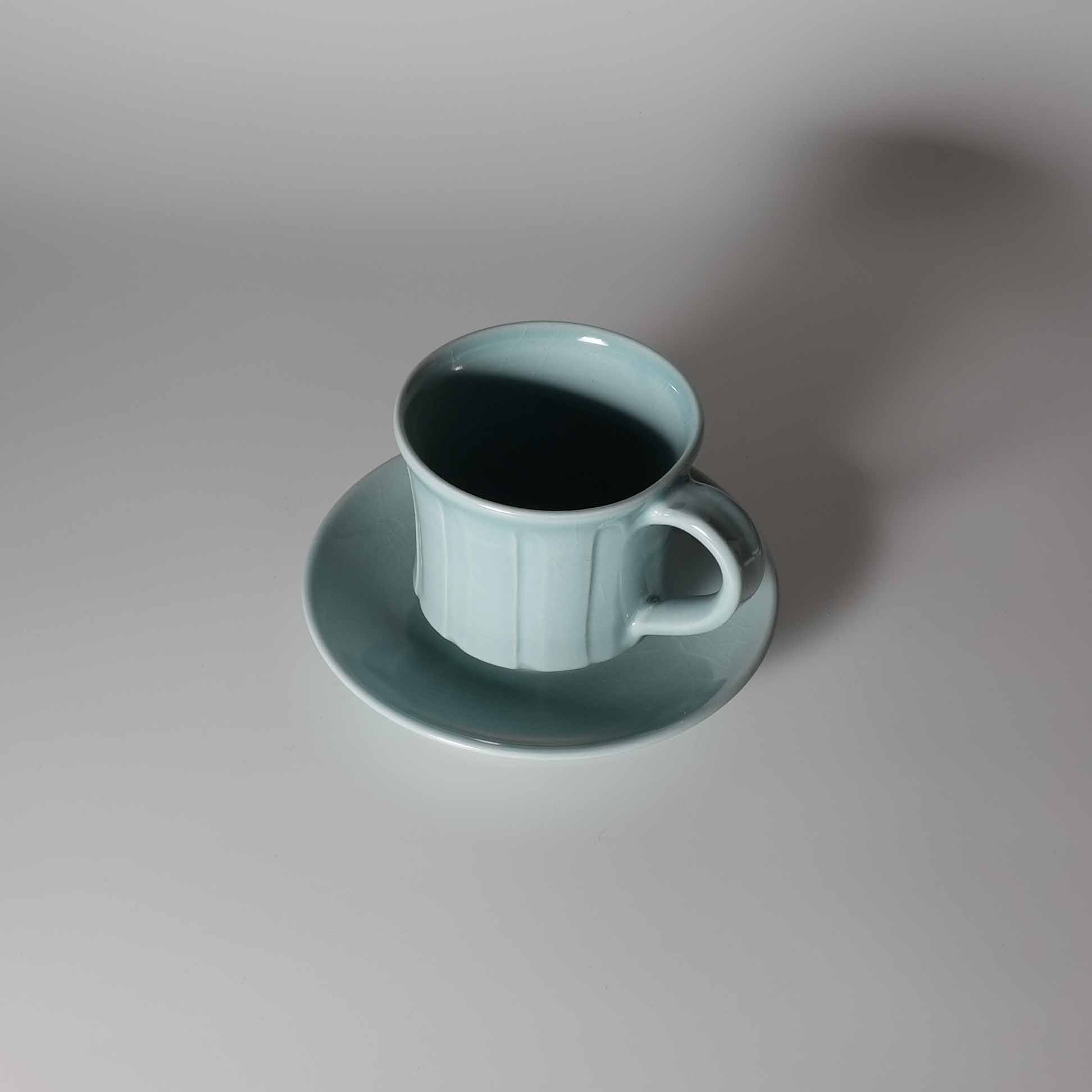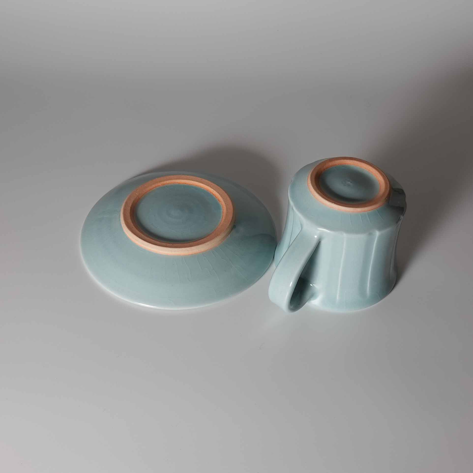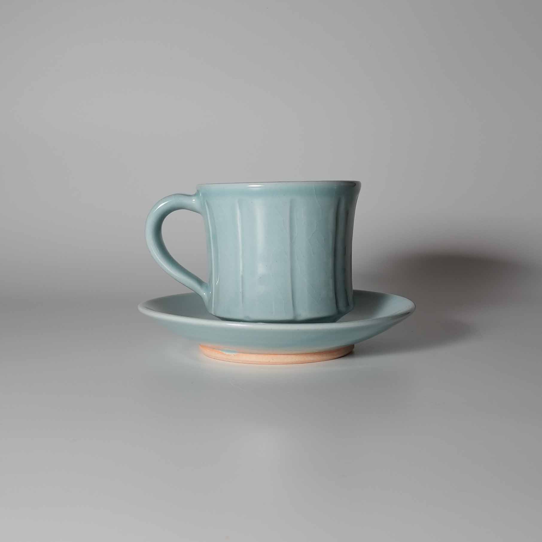 Blue mug cup and saucer. Tohru Funasaki. Hagi yaki Japanese ceramic. HagiyakiyaSold Out