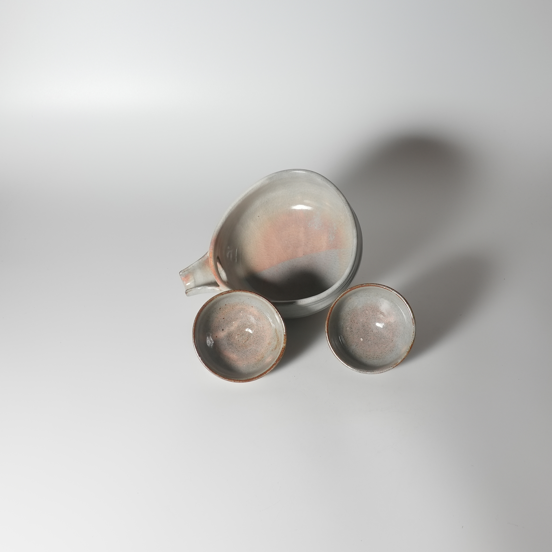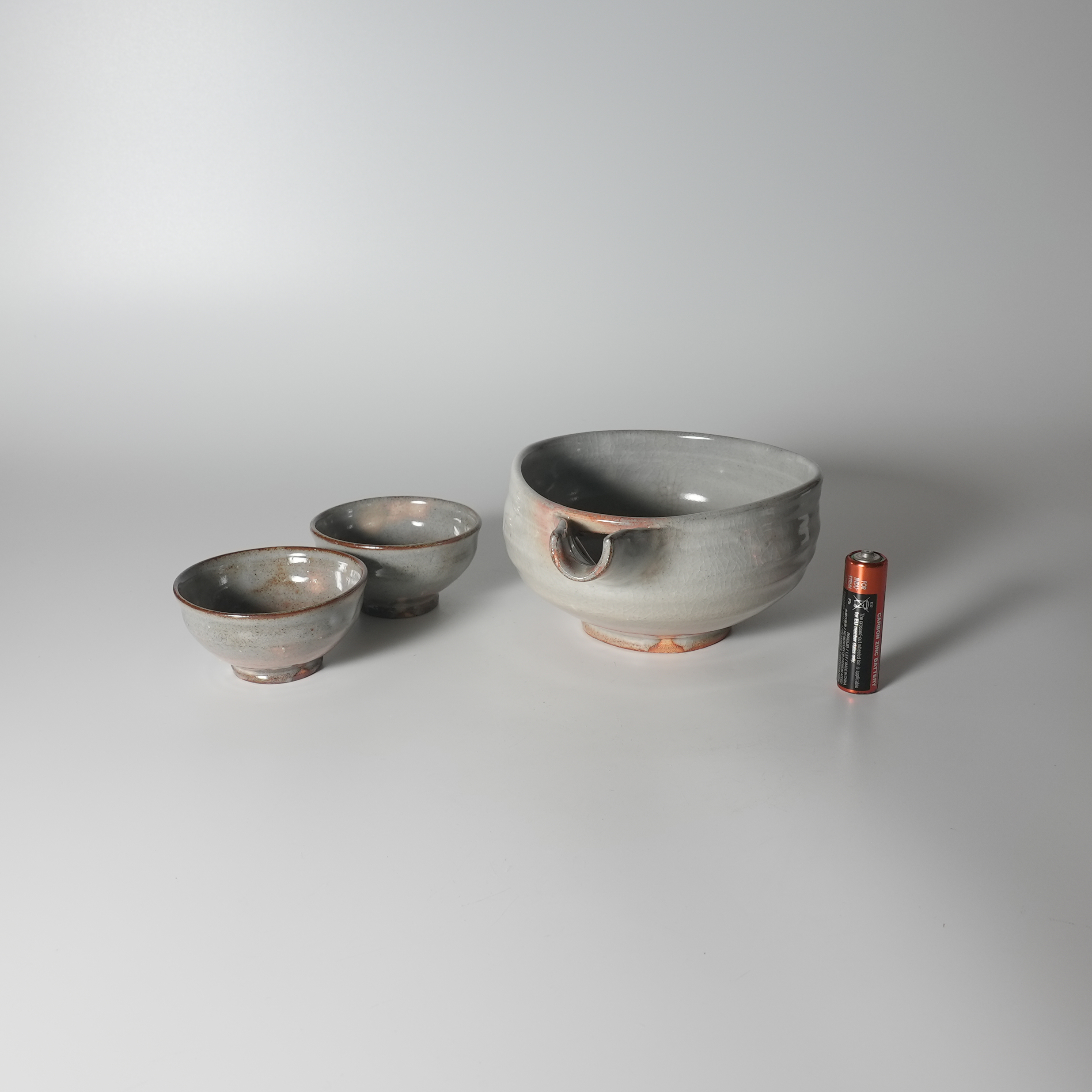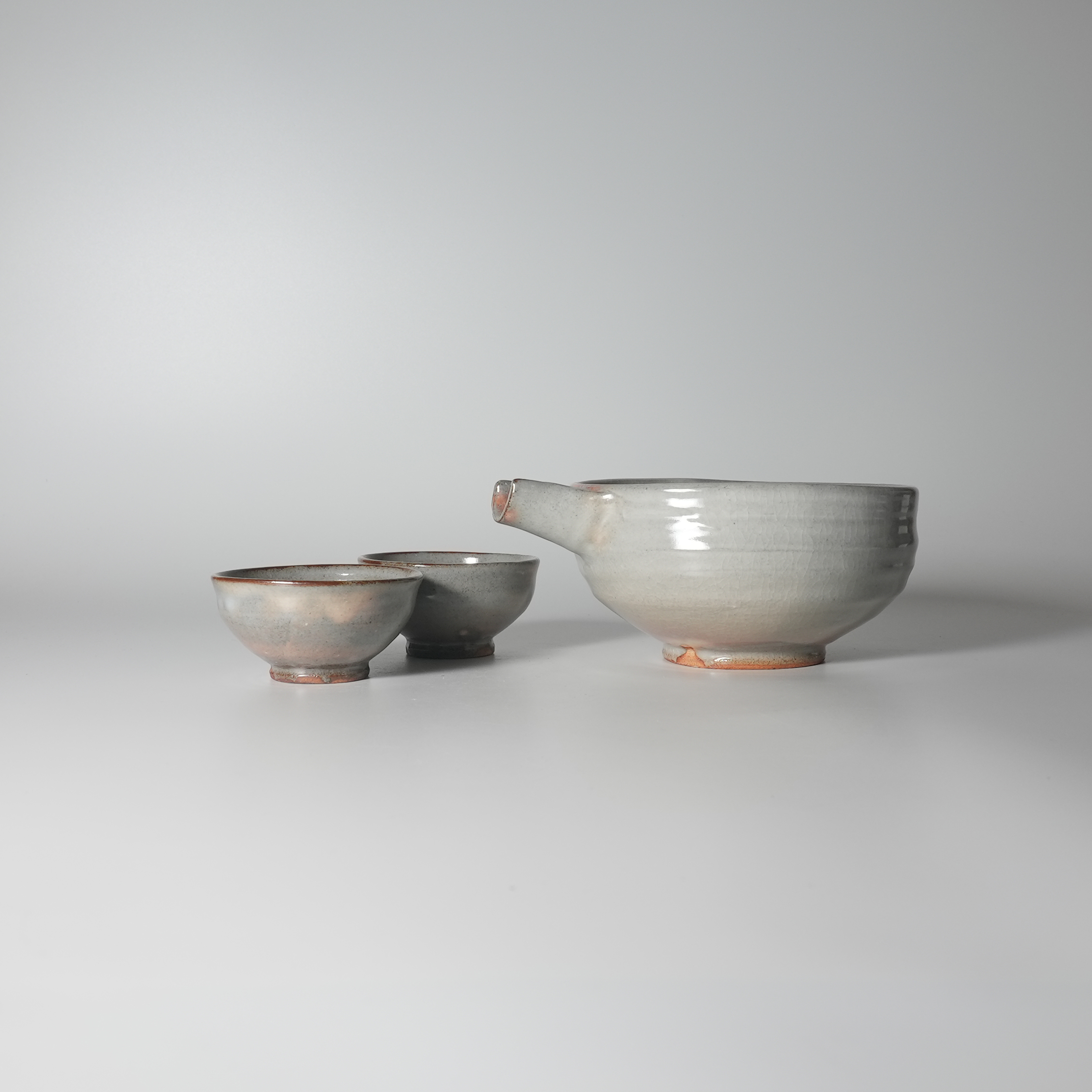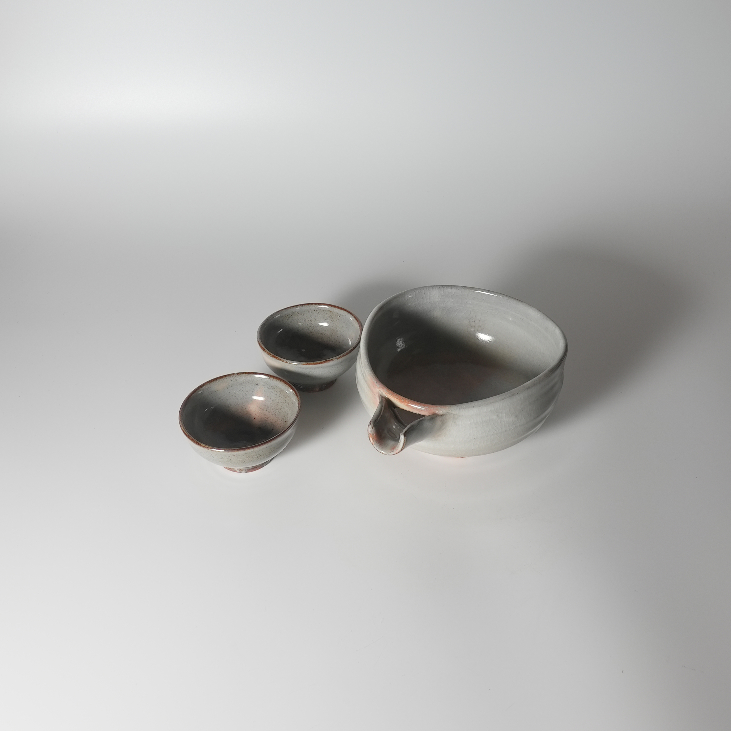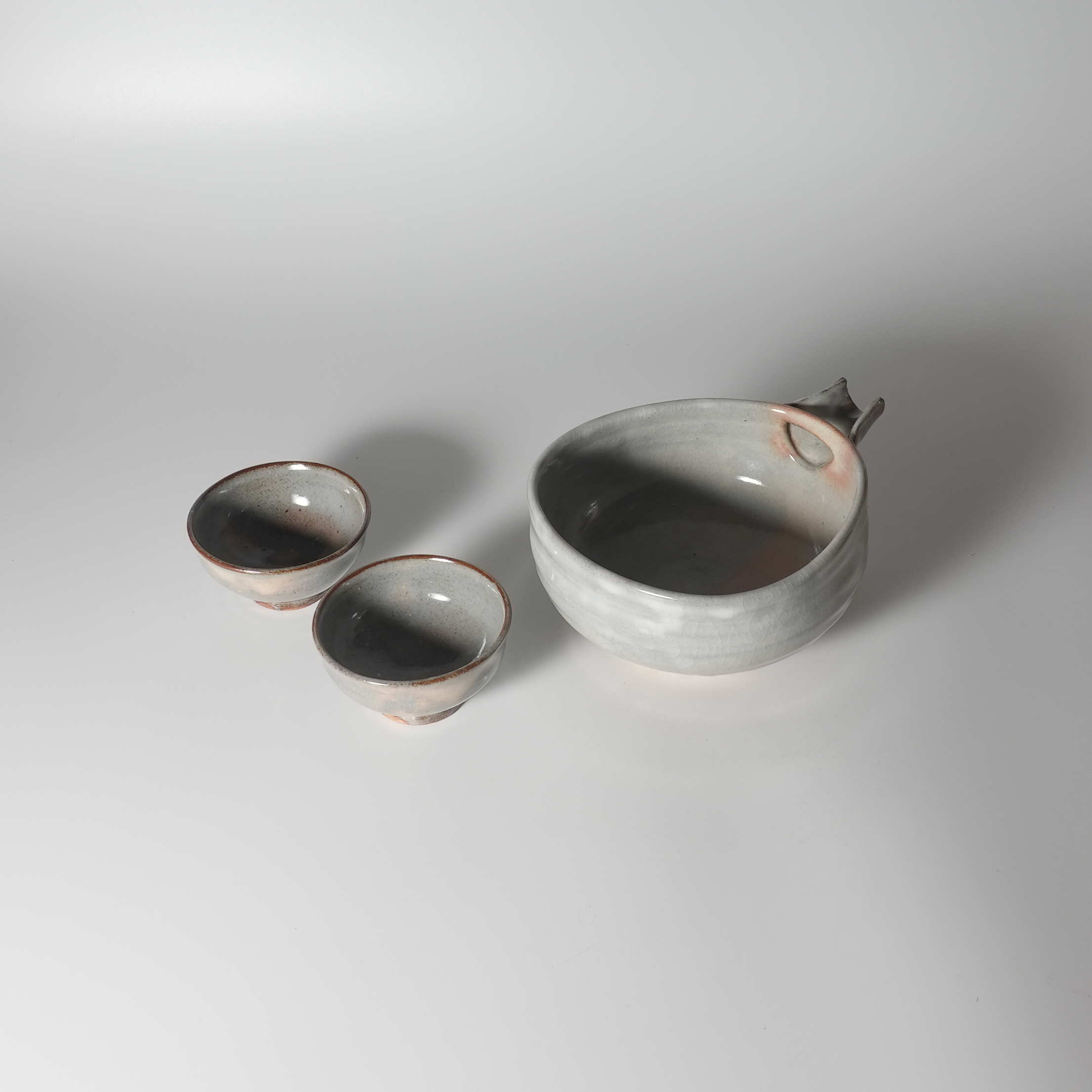 Set of 2 Guinomi Sake cups and lipped bowl with wooden box, Keien Kaneta.Sold Out