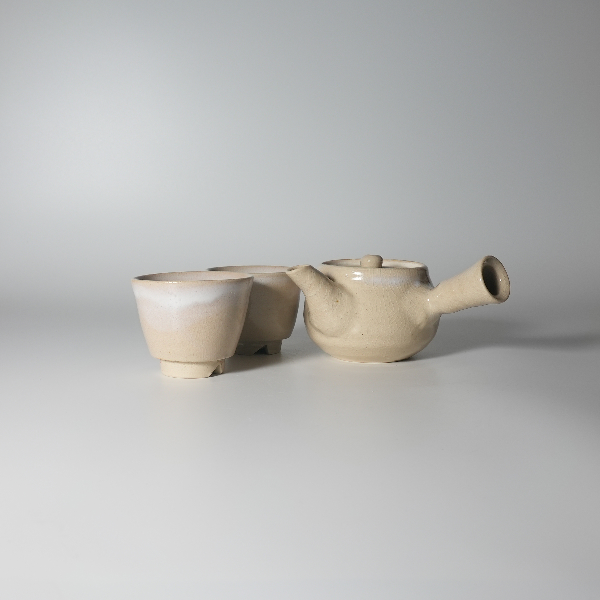 Sencha teaset teapot and cups. Keien Kaneta. Hagiyaki.