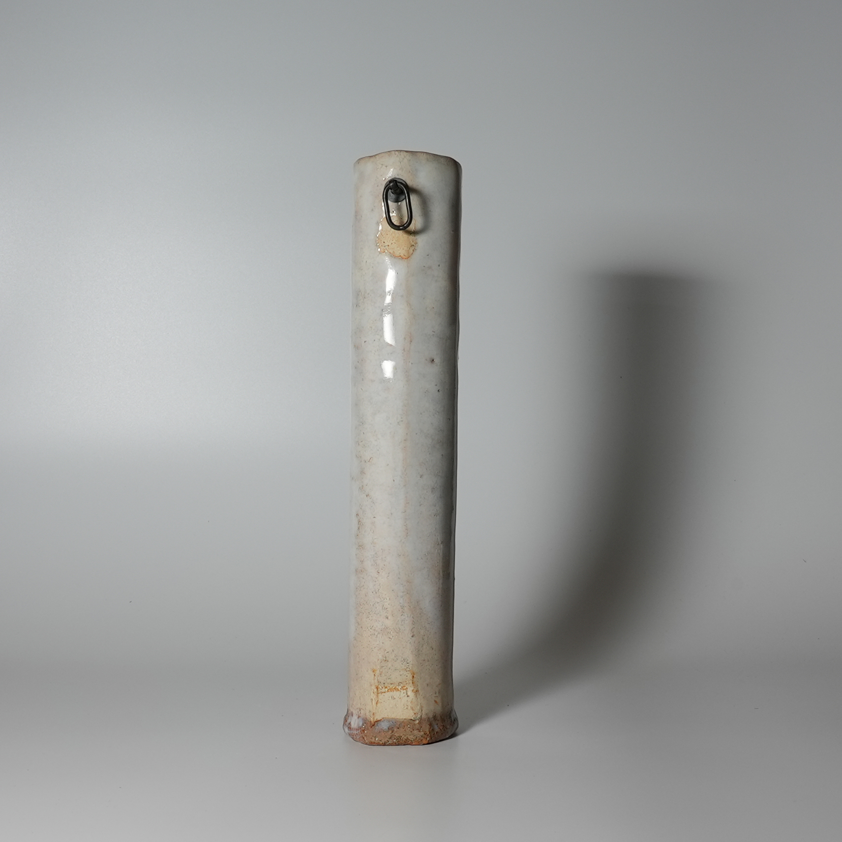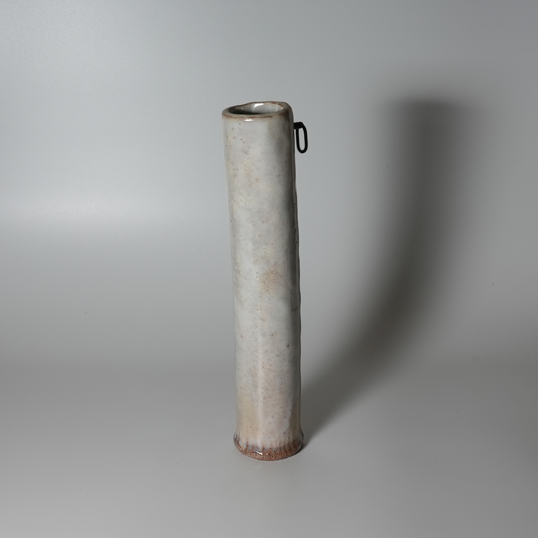 Hanging flower vase Kakehanaire, Keien Kaneta. Hagi yaki Japanese ceramic.