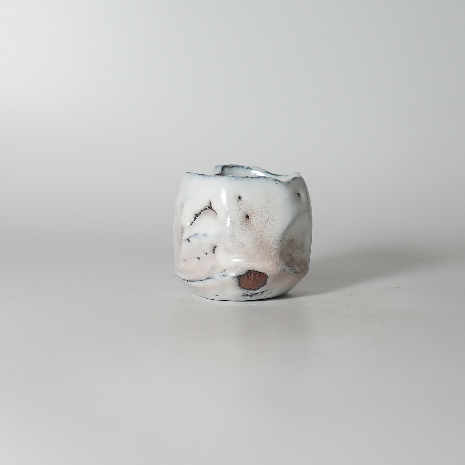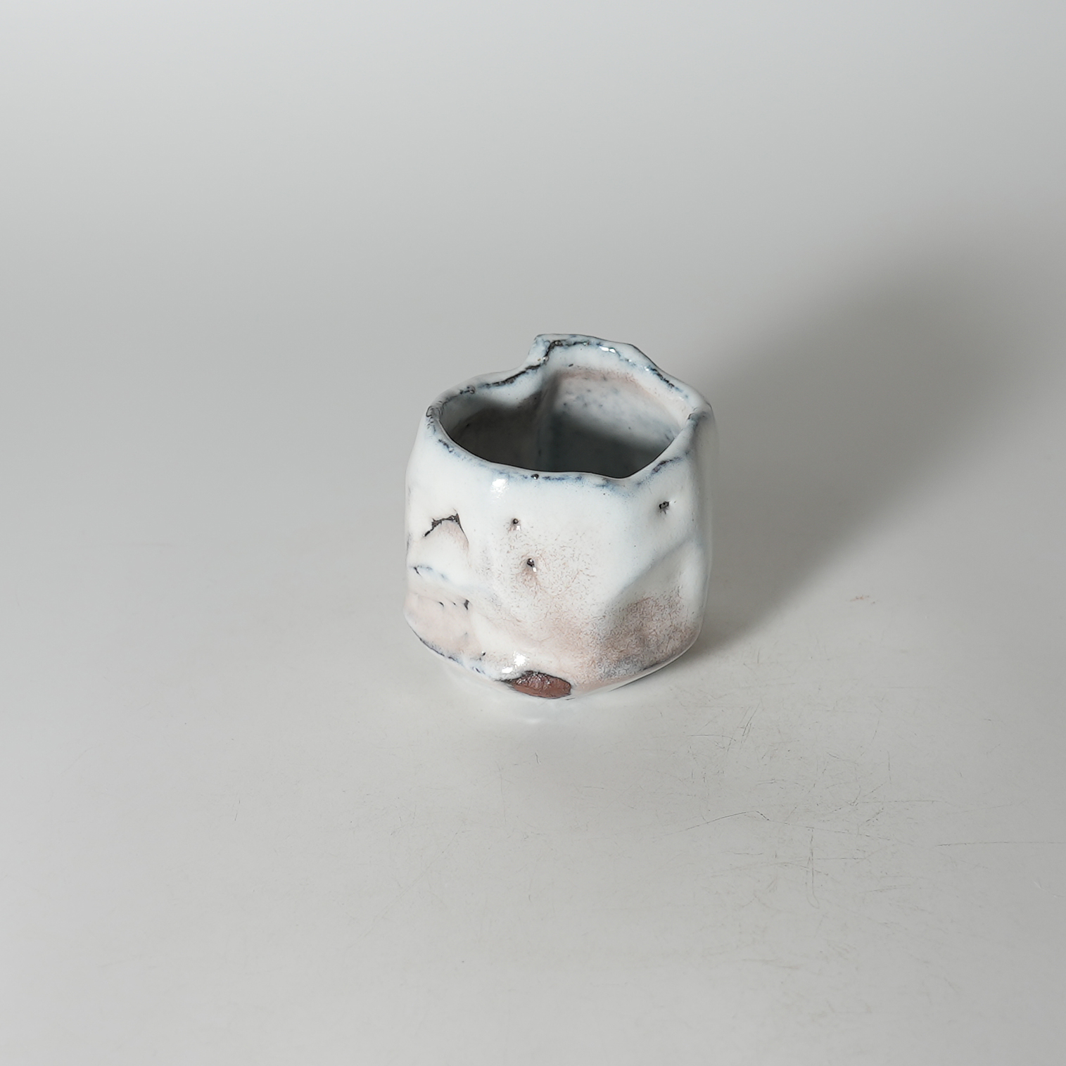 Kurinuki guinomi sake cup. Masanao Kaneta. Hagiyaki.