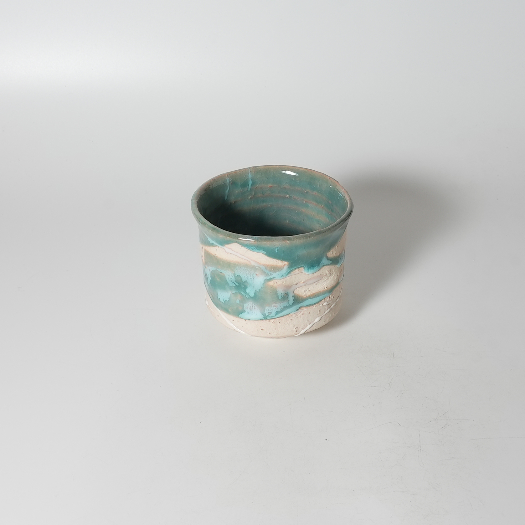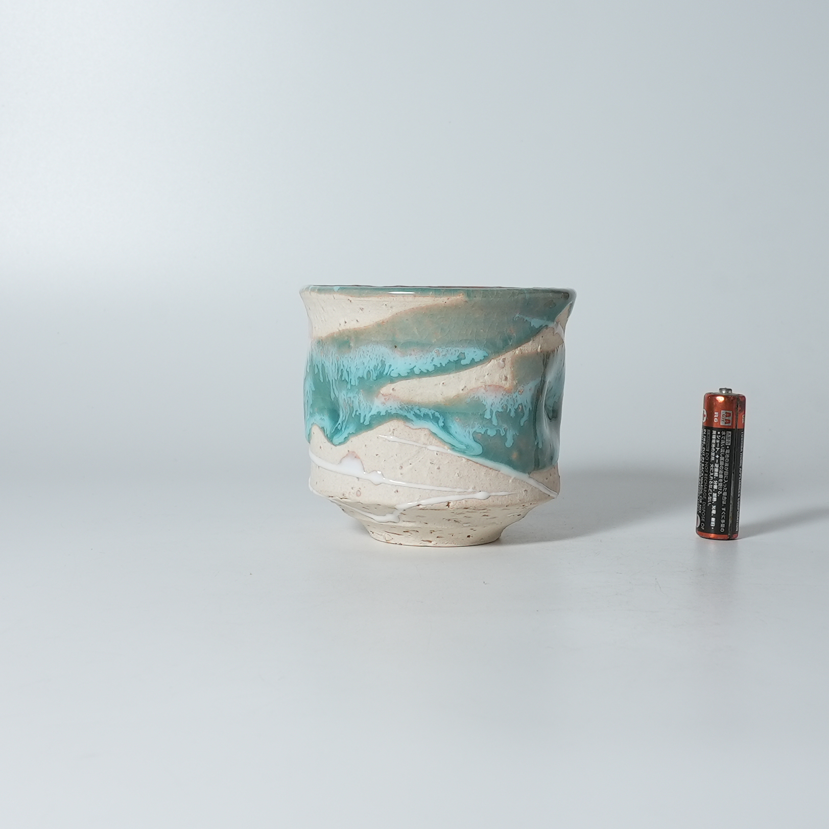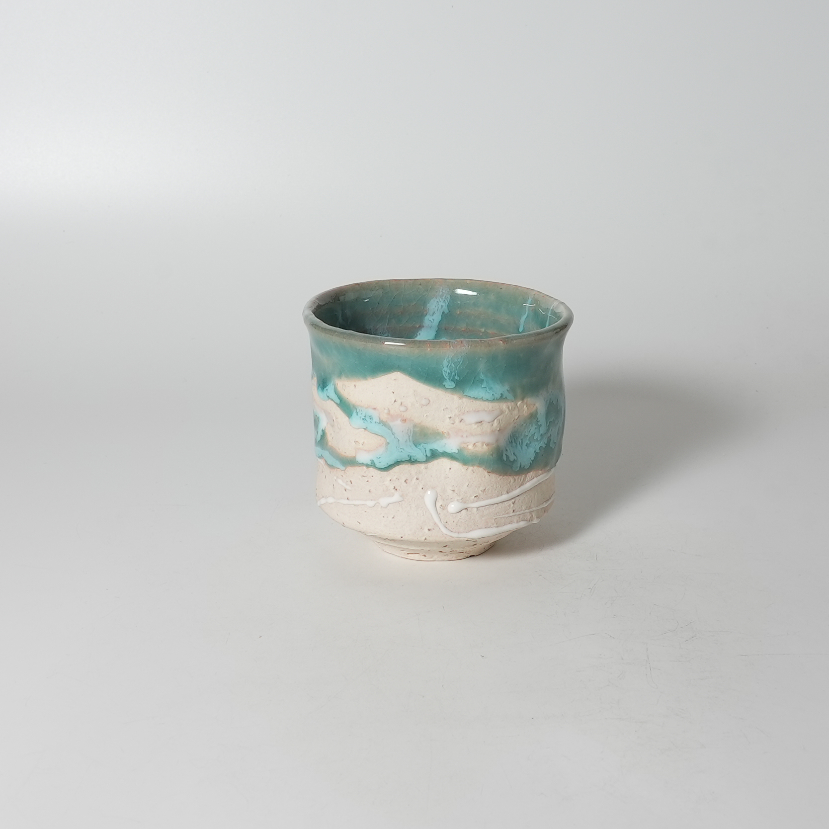 Green glaze yunomi Teacup. Sohei Matsuno. Hagiyaki Japanese potter.
