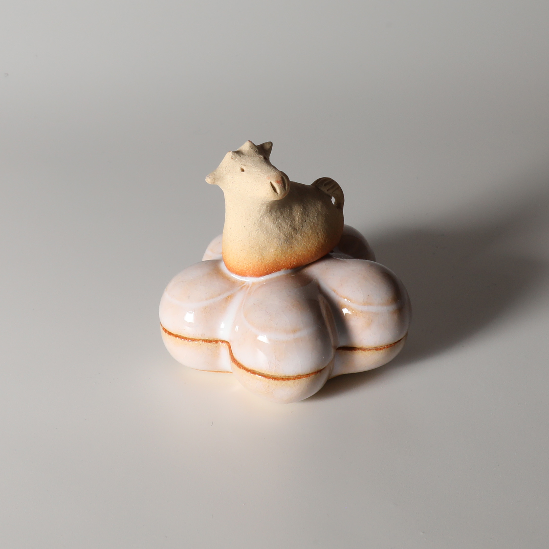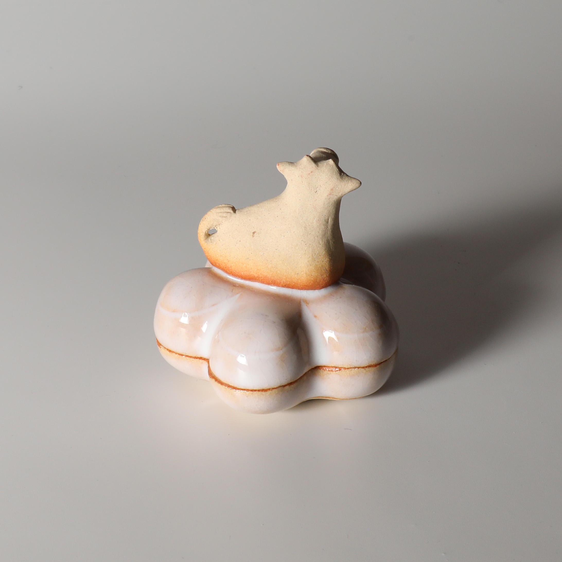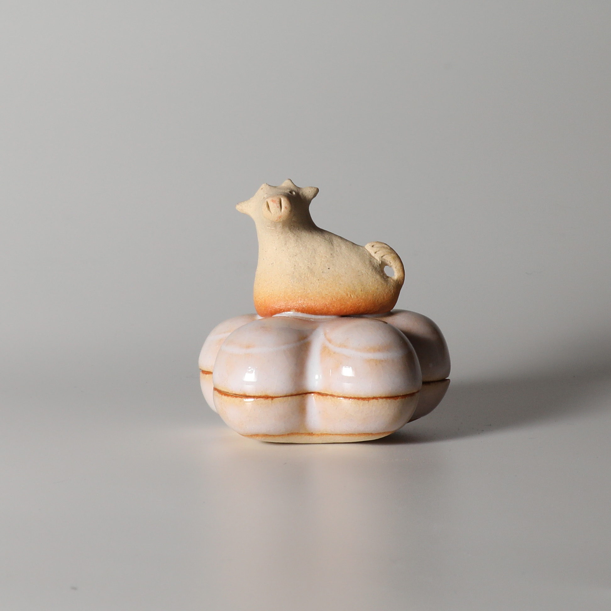 2021 Eto animal rat kogo incense holder with wooden box made by Miwako Nagata. Hagi yaki Japanese pottery.