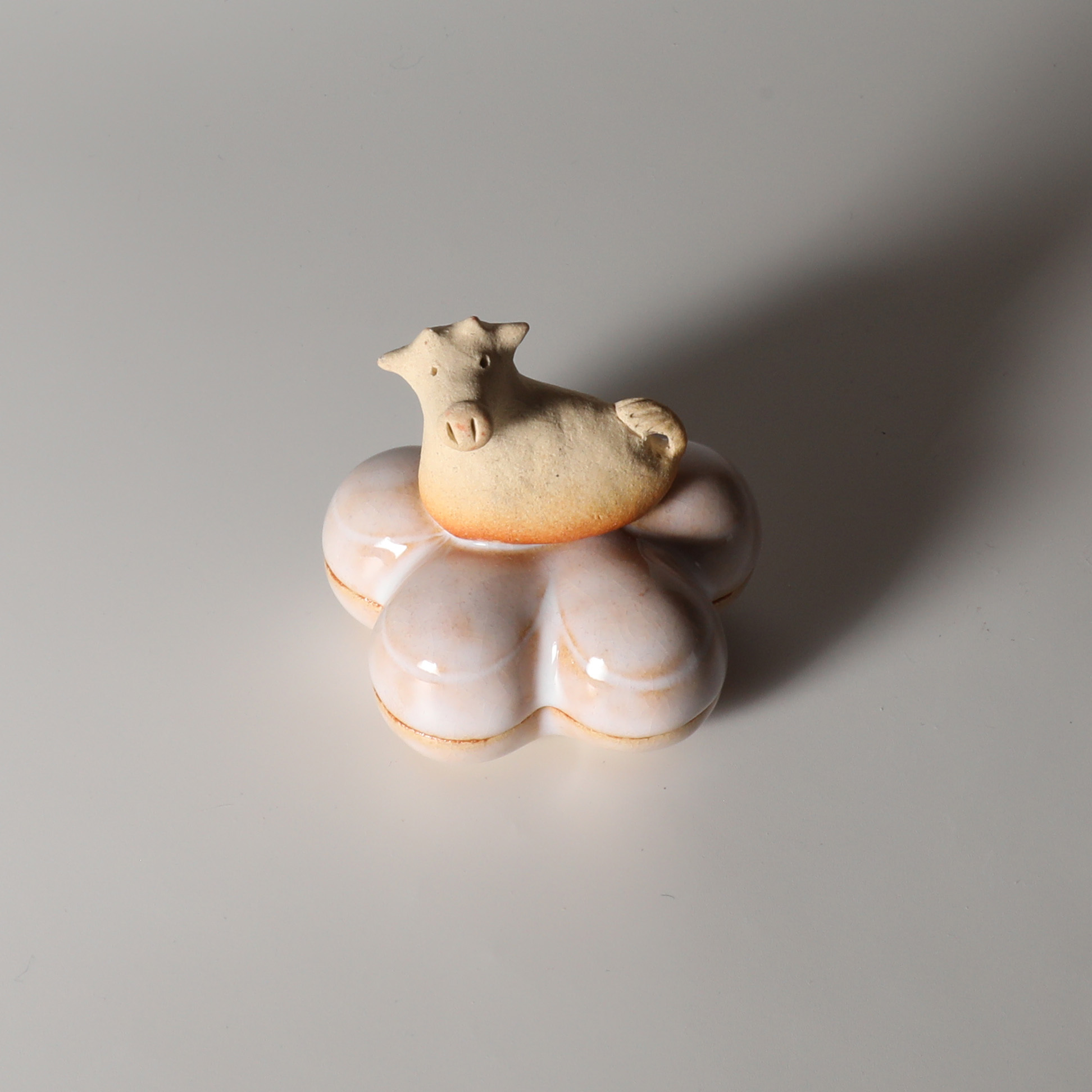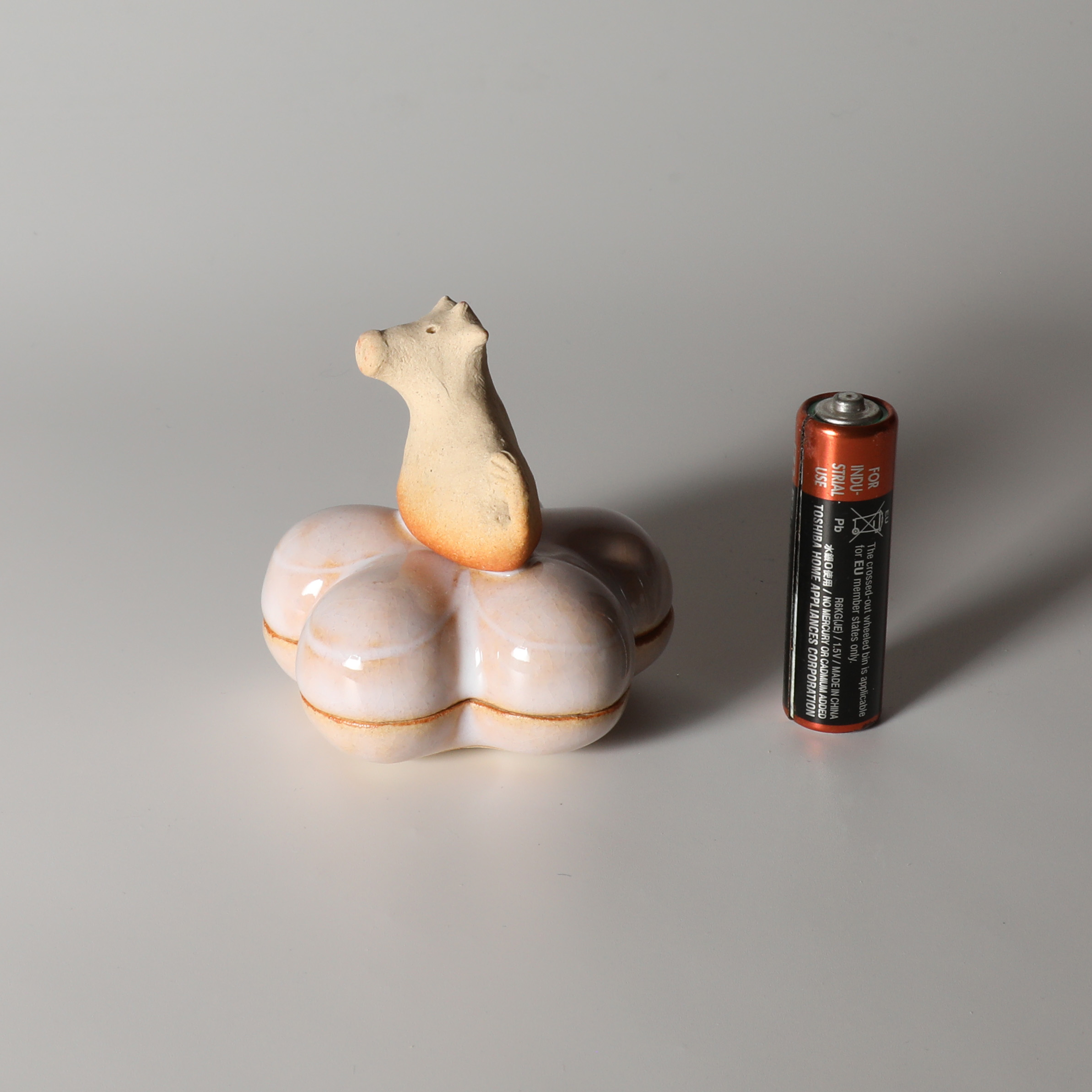 2021 Eto animal rat kogo incense holder with wooden box made by Miwako Nagata. Hagi yaki Japanese pottery. Hagiyakiya