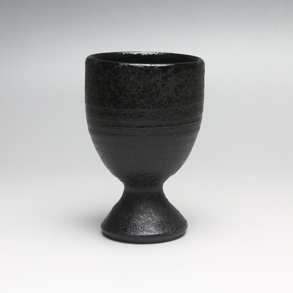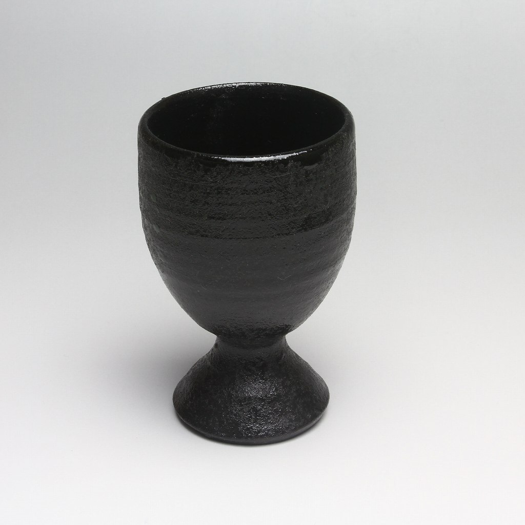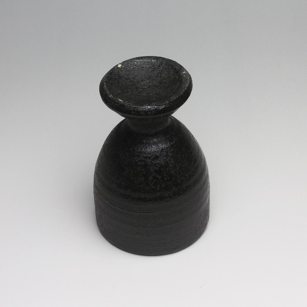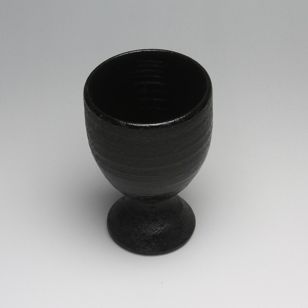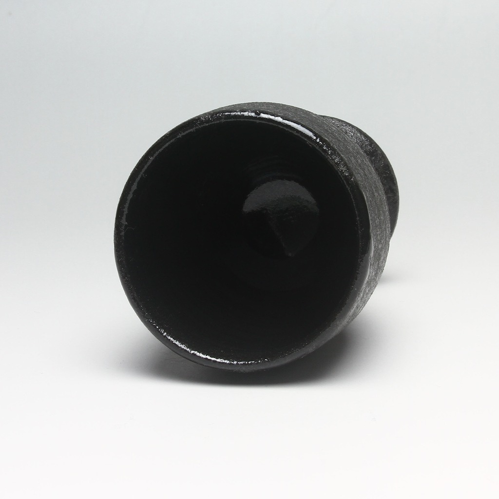 Black Sake cup made by Kazusa Nosaka. Japanese traditional ceramic Hagiware.