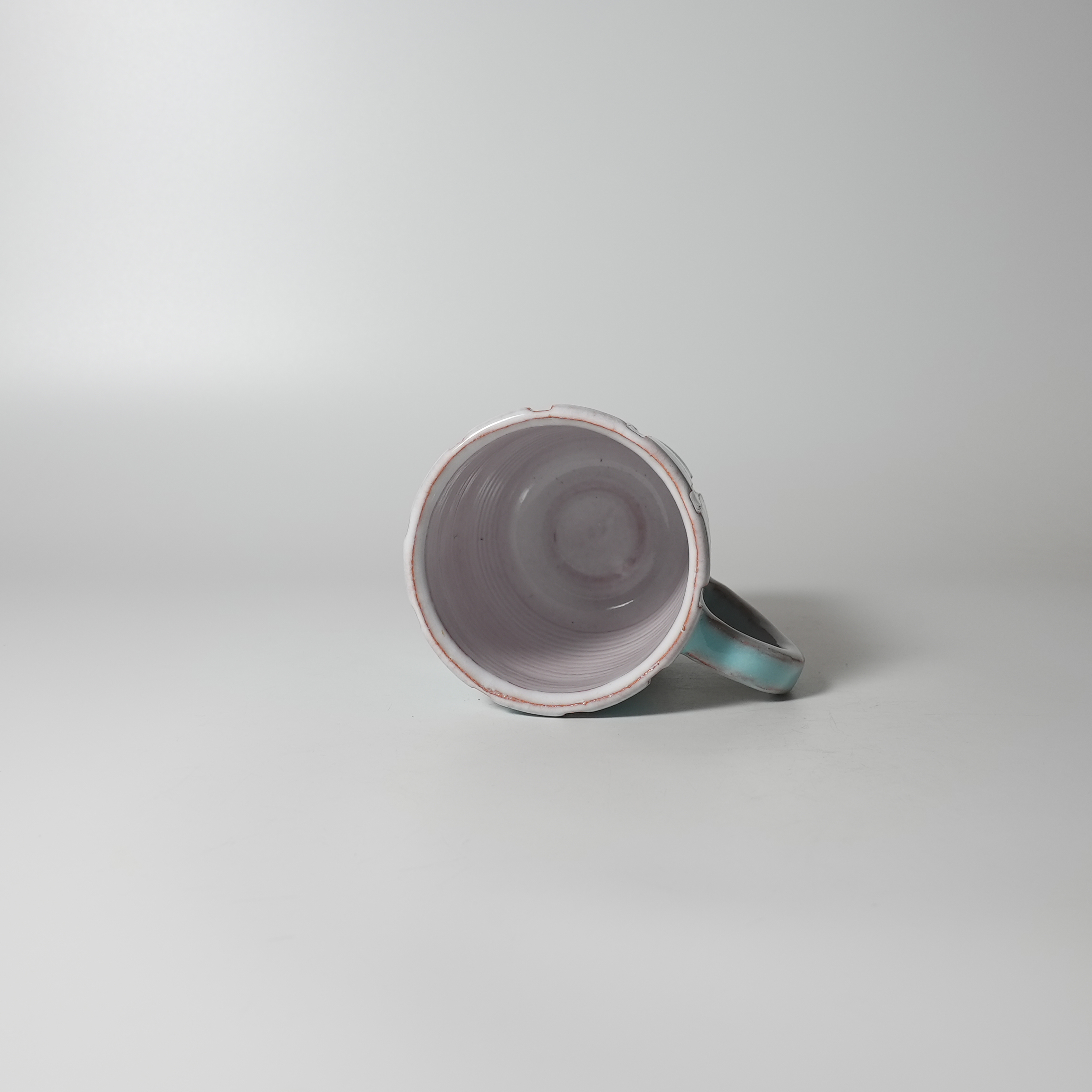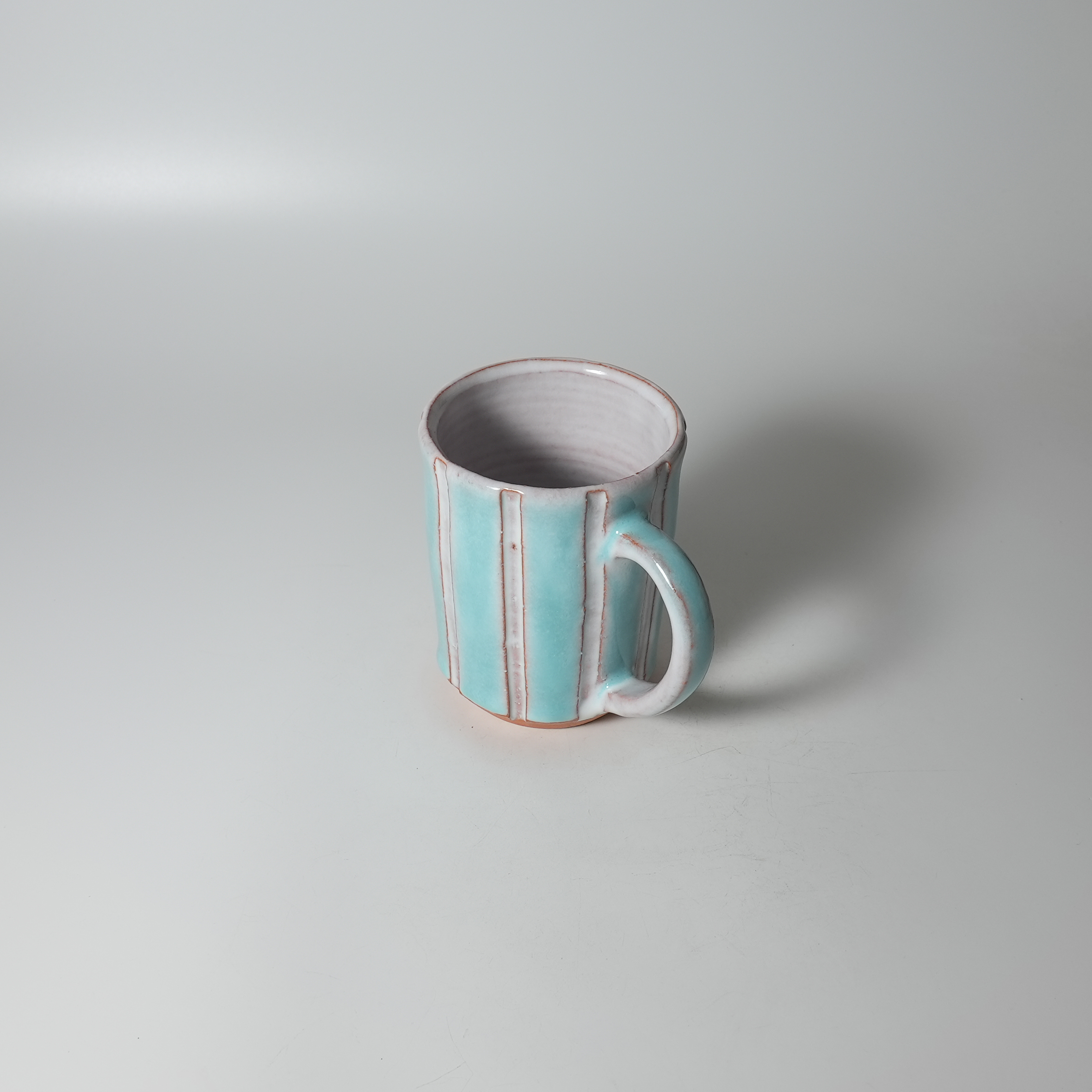 White and green glaze mug made by Yasushi Okada. Hagi yaki.