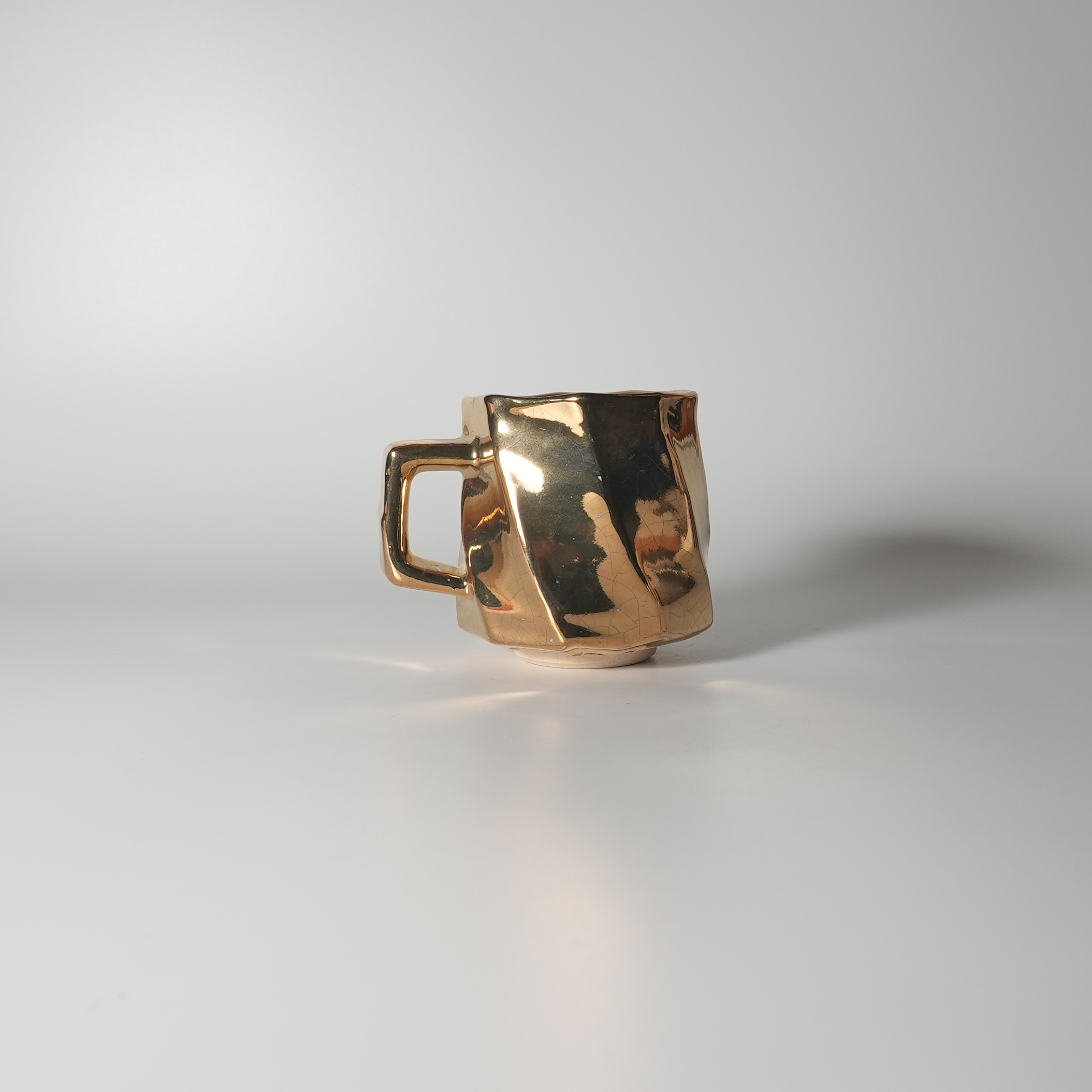 Gold Mug cup, Zenemon Sakakura. Hagi yaki Japanese ceramic. Paper box.
