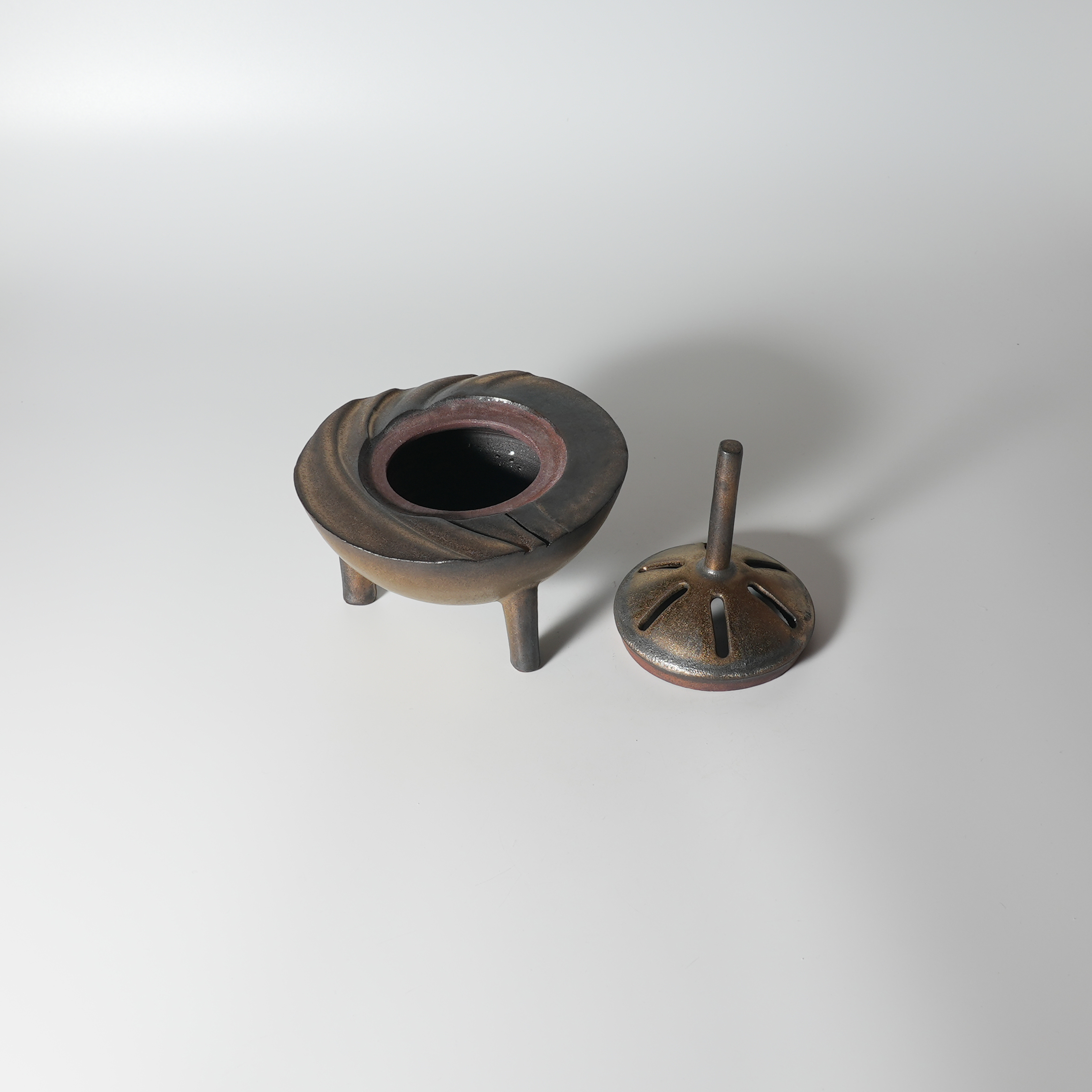 Koro incense holder gekkosai, Zenemon Sakakura with wooden box. Hagi yaki. Hagiyakiya