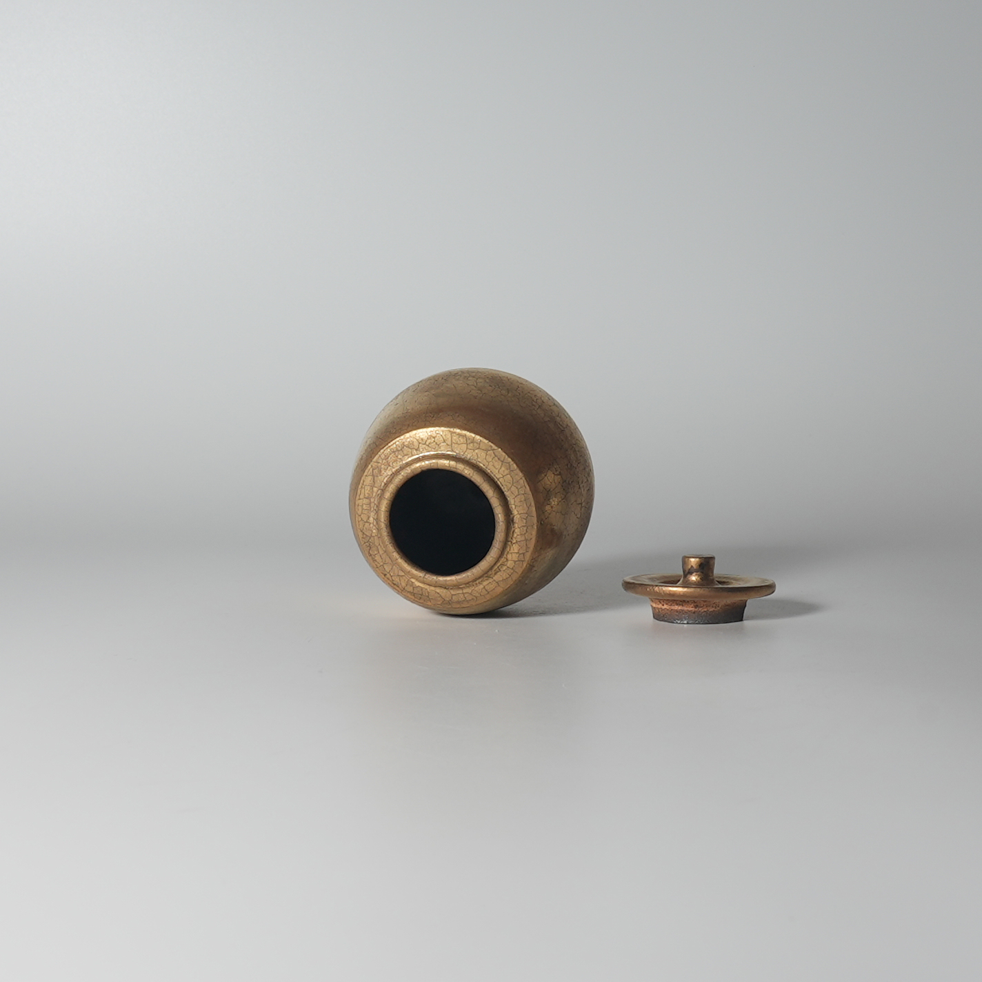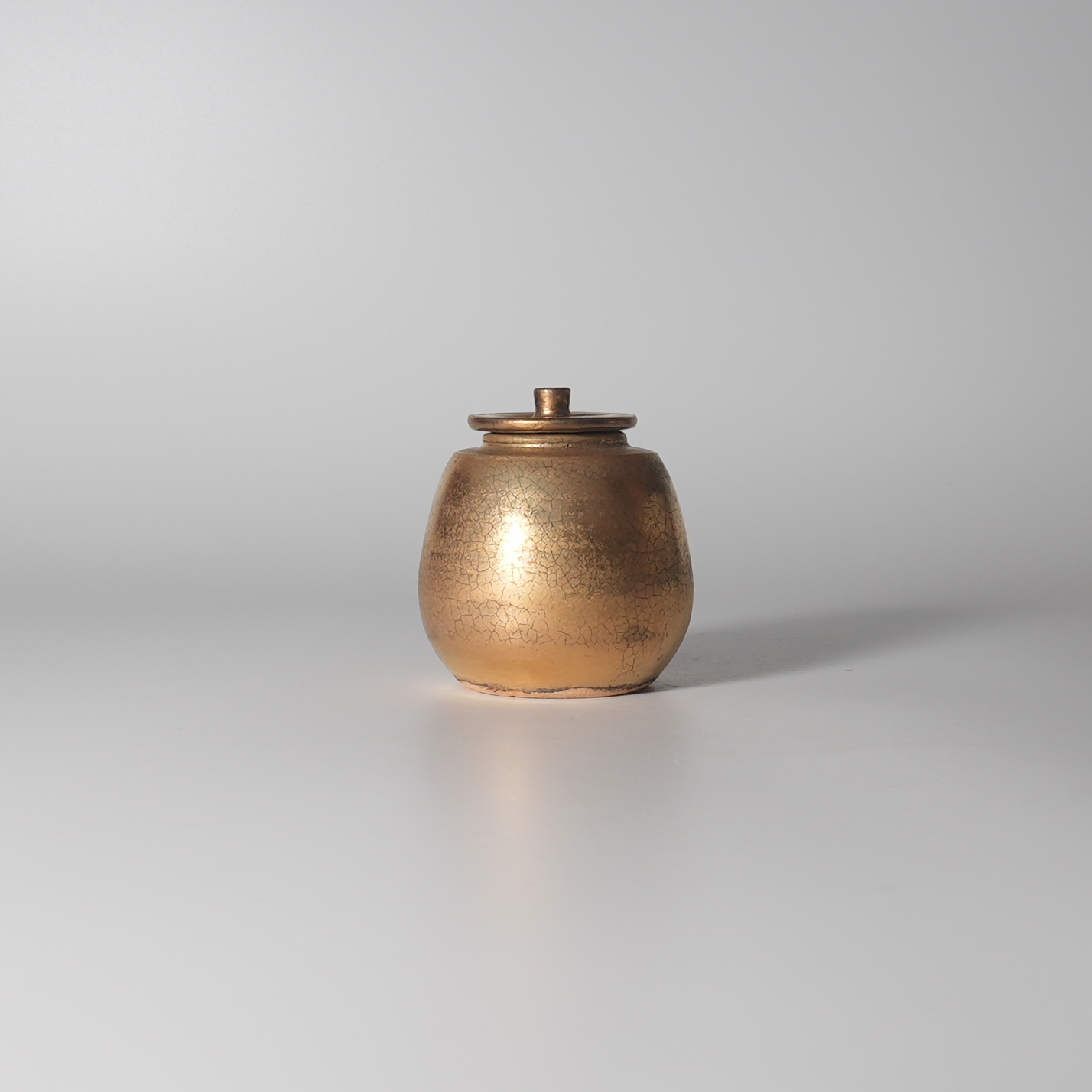 Gold chaire matcha powder container, Zenemon Sakakura. Wooden box.Sold Out