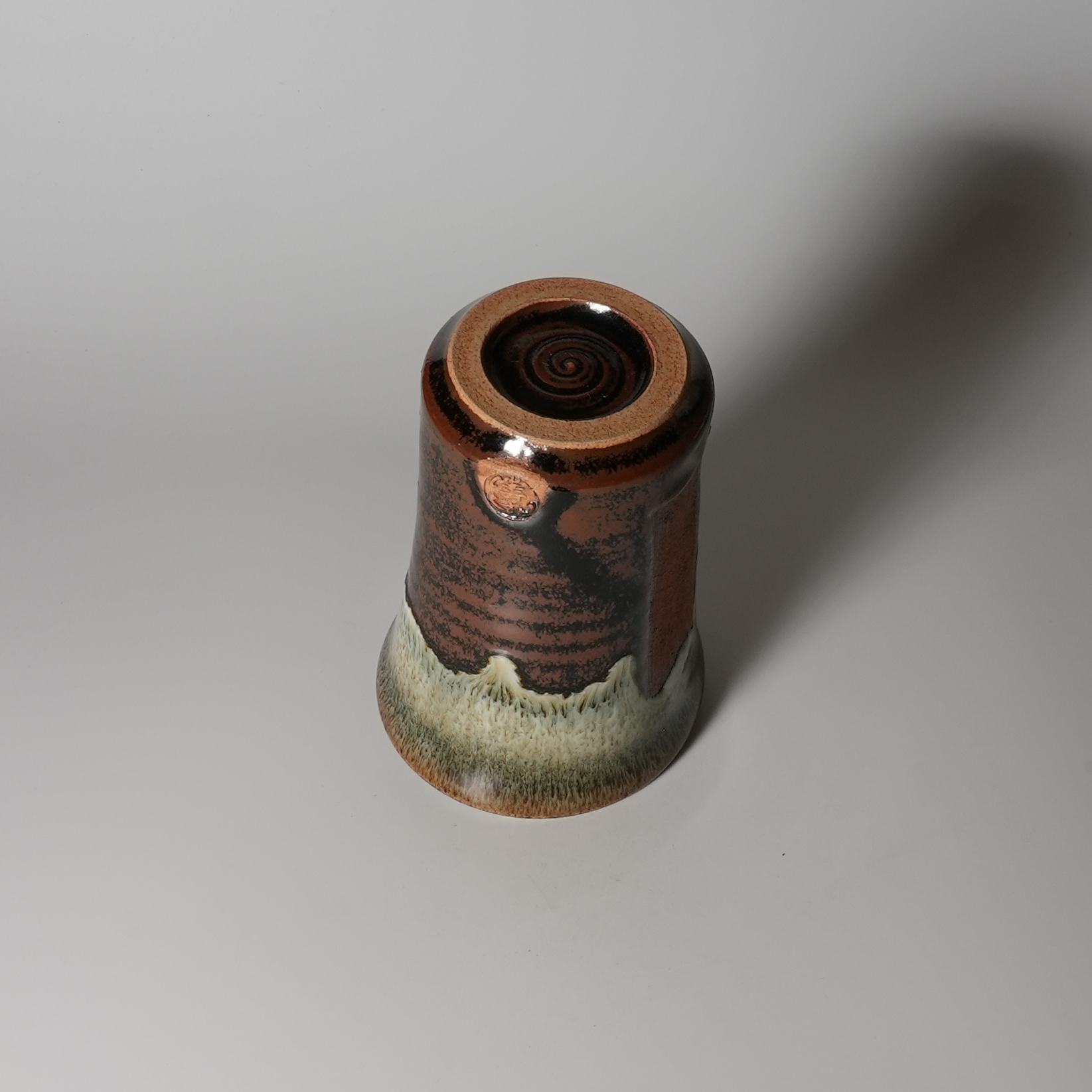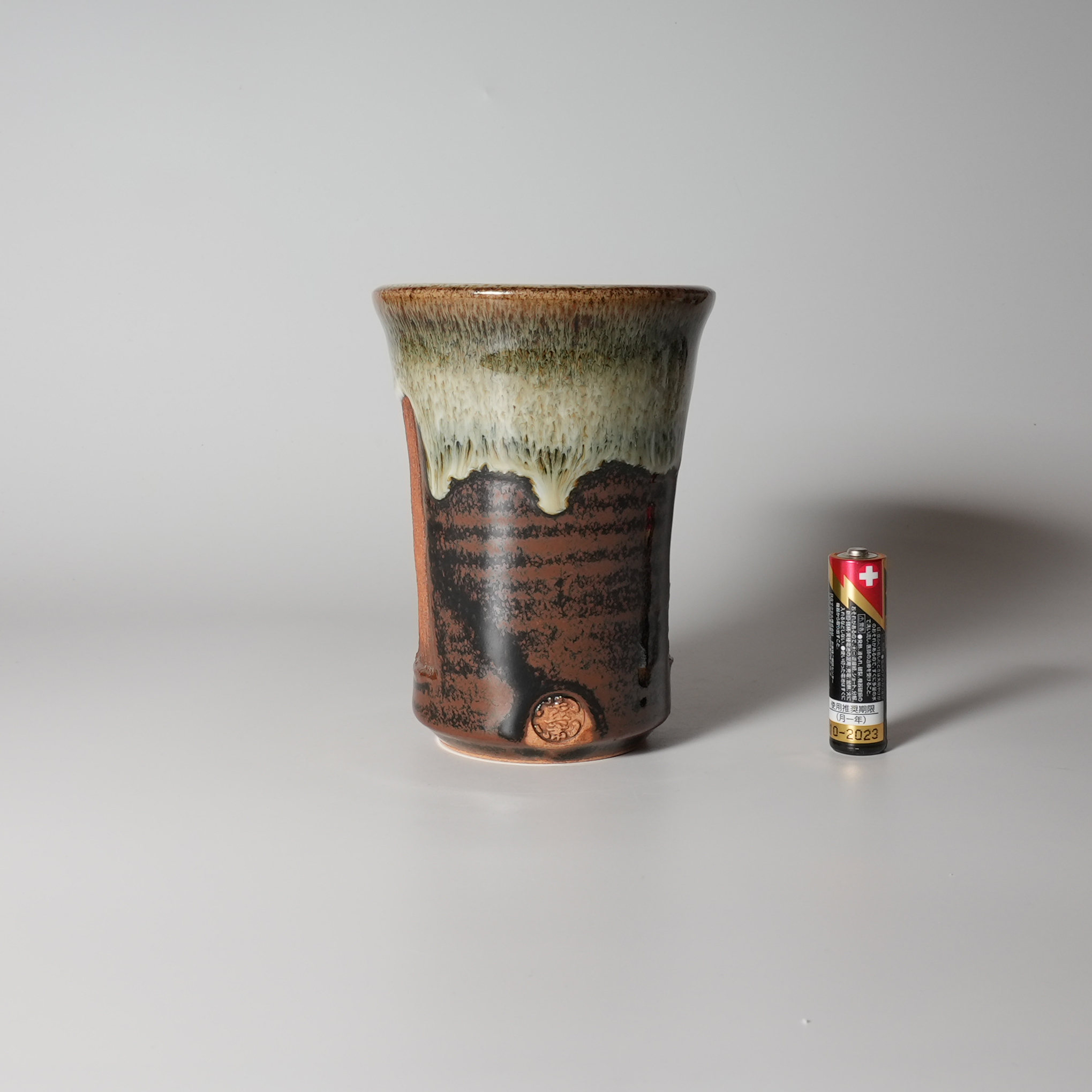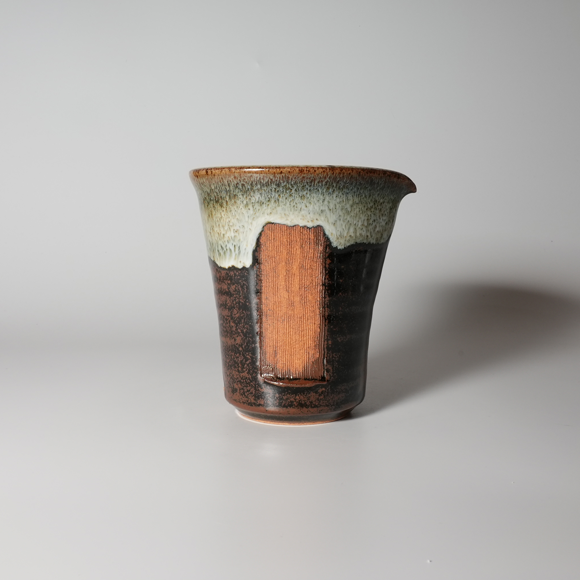 Airon glaze katakuchi lipped cup, 13th Tohbe Tahara with wooden box.