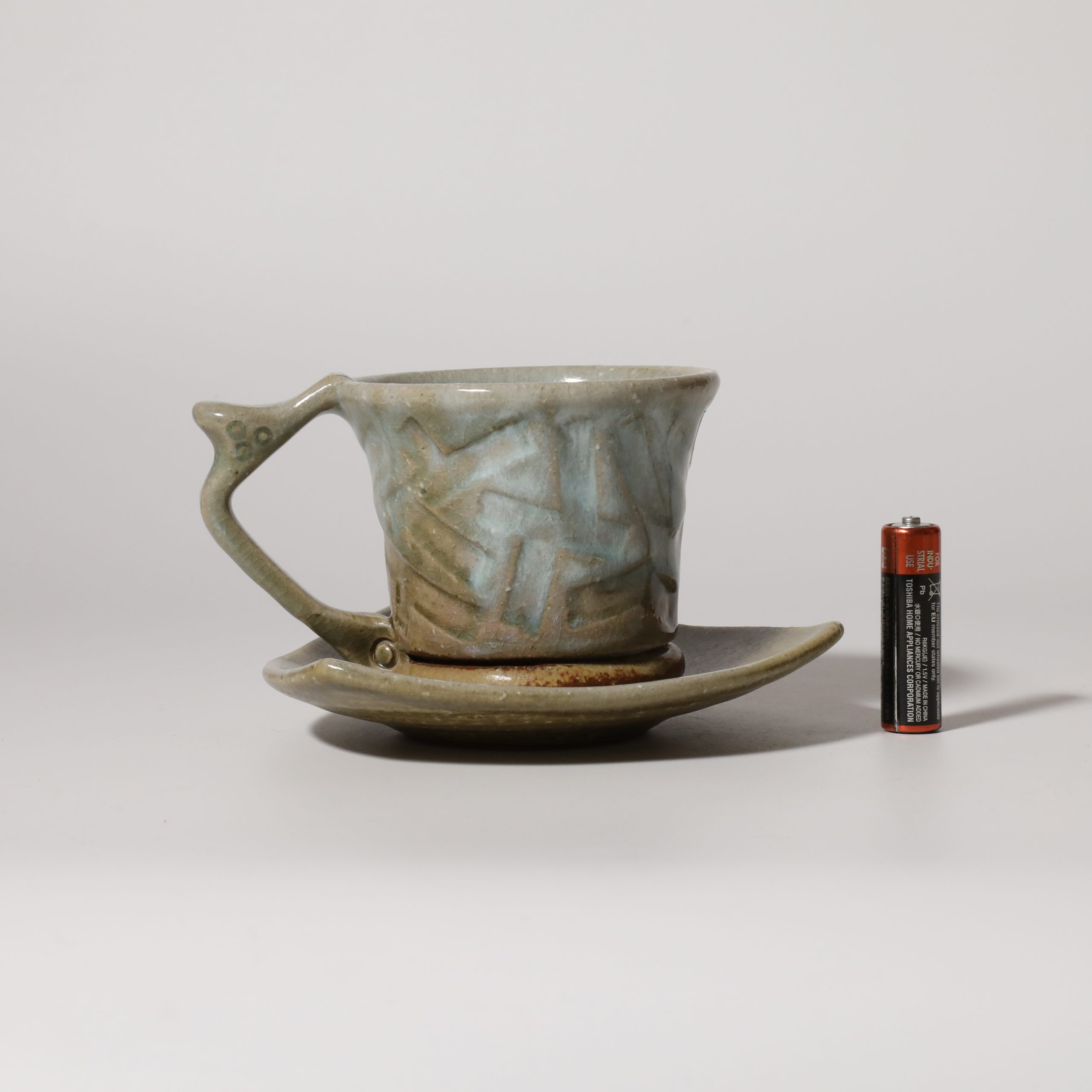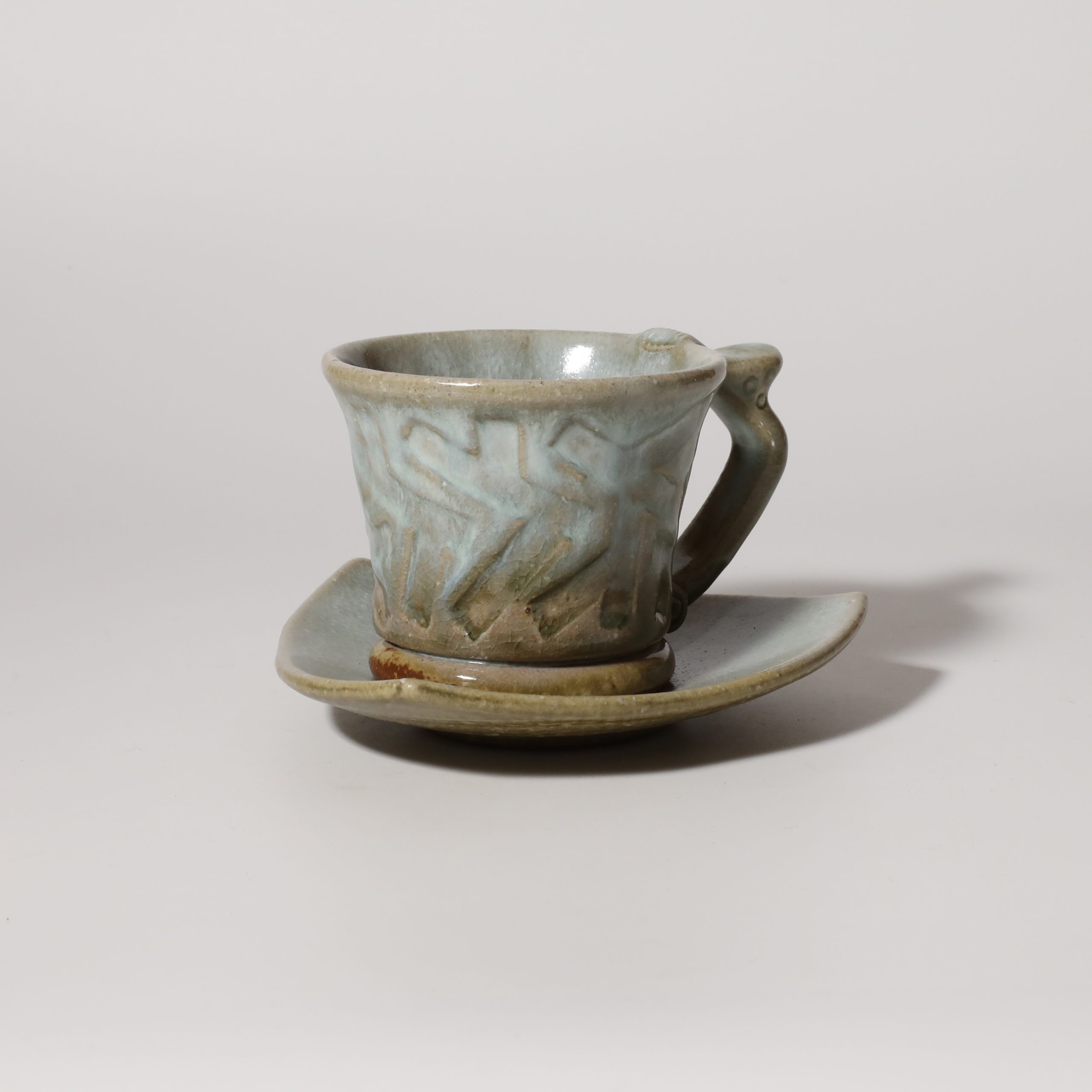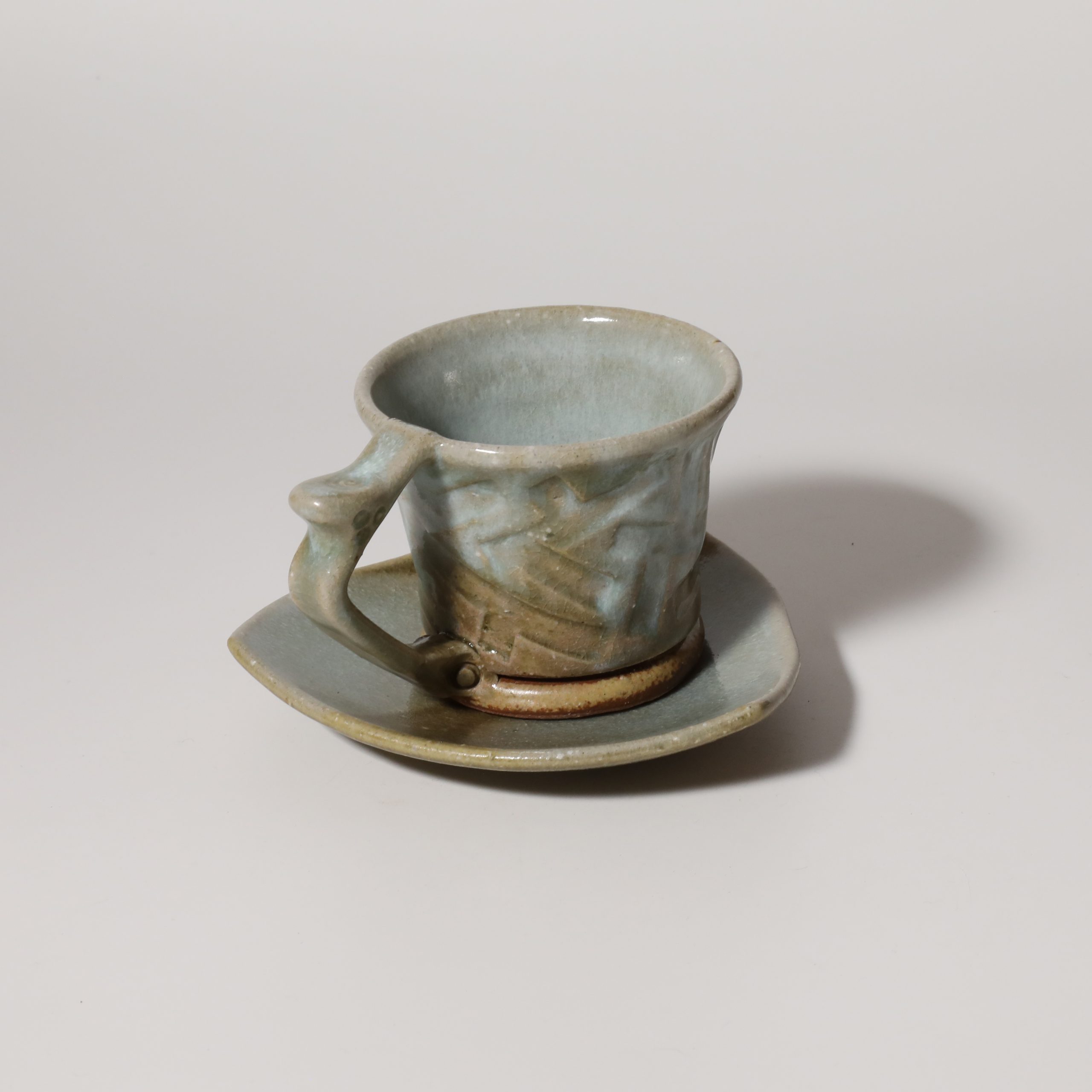 Aohagi coffee cup and saucer made by Tairei Tokimatsu. Hagi yaki Japanese ceramic.