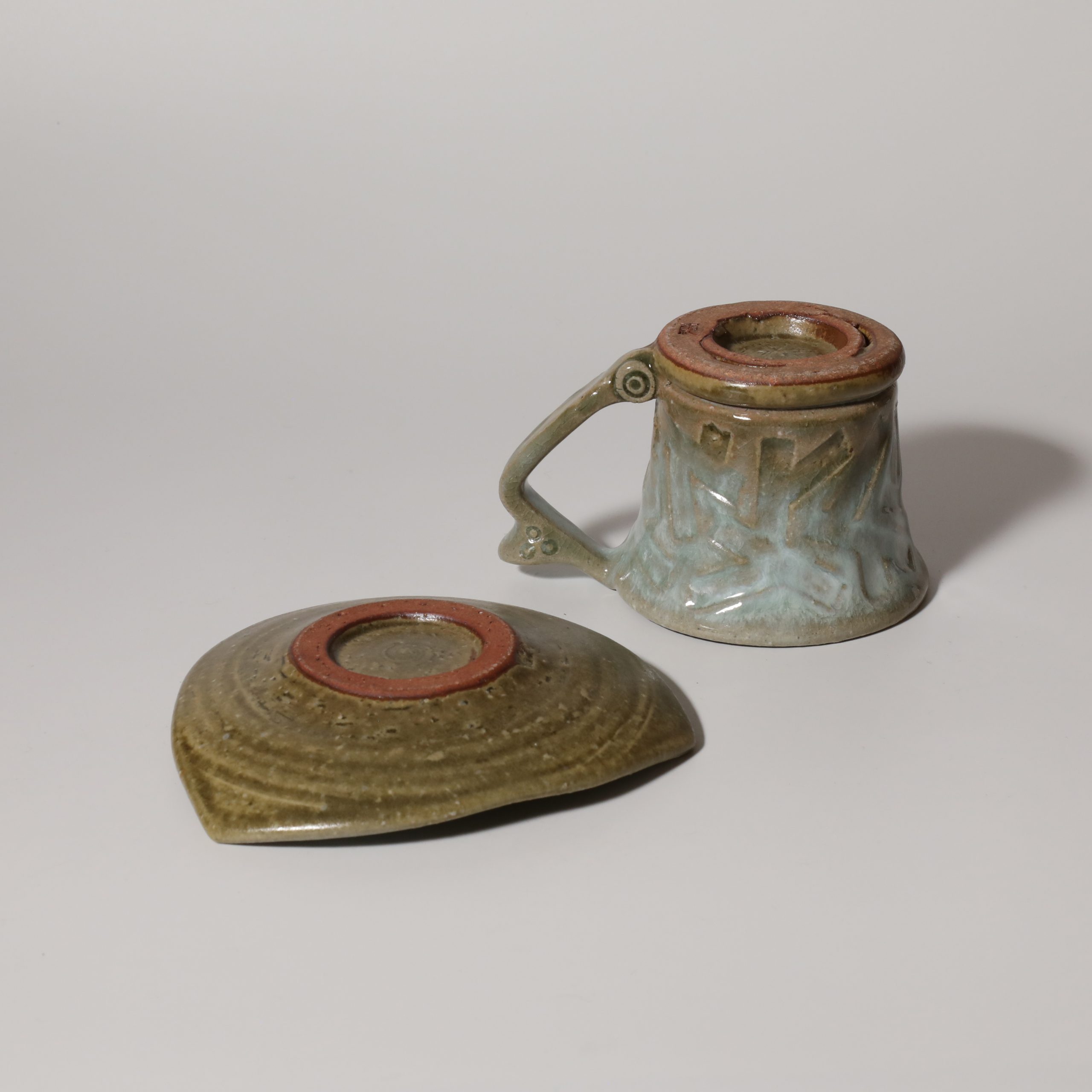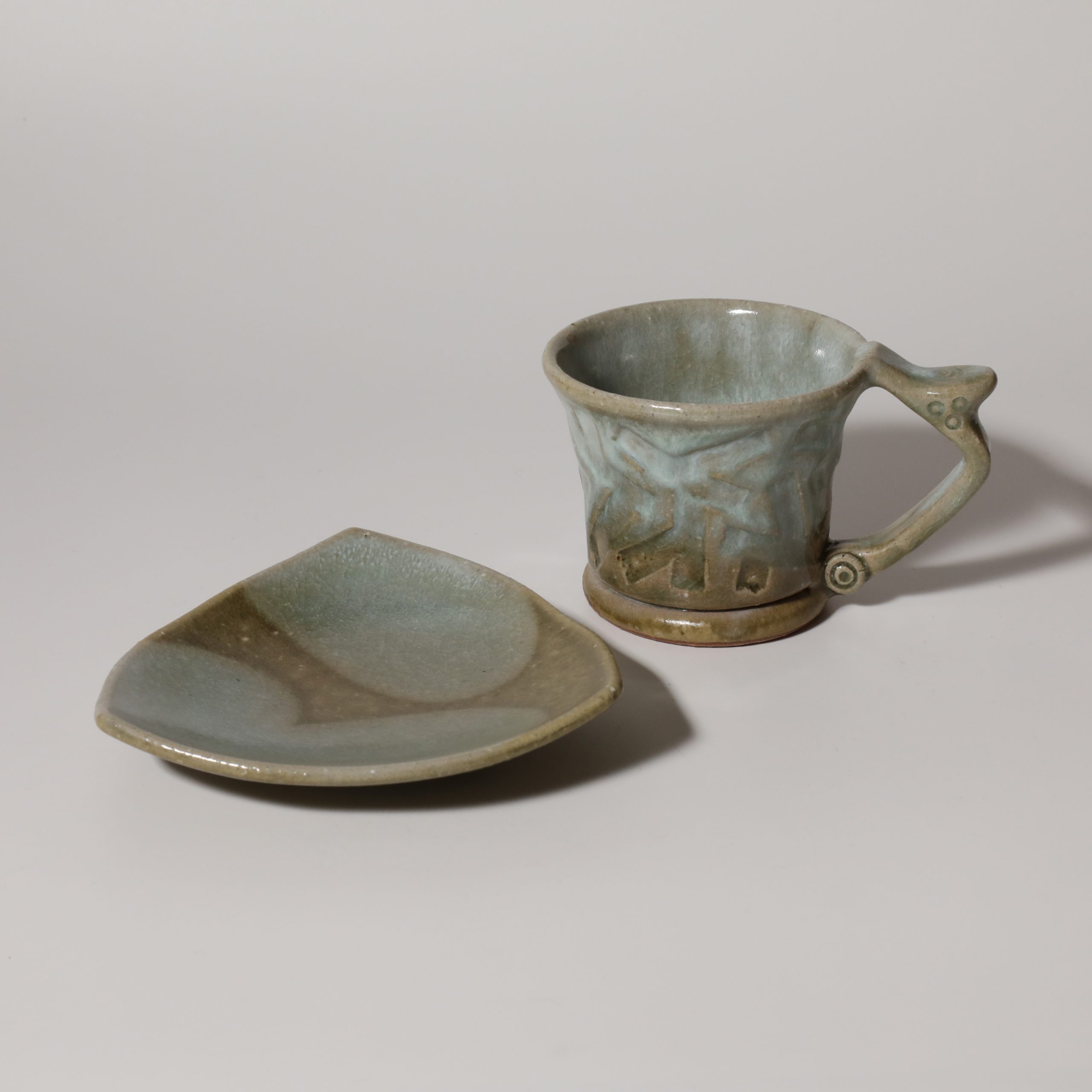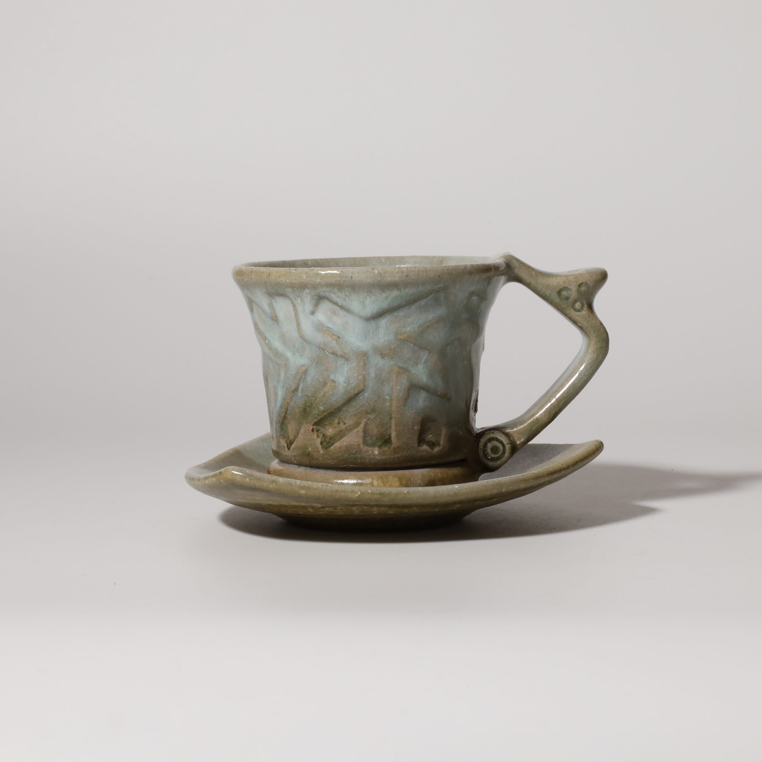 Aohagi coffee cup and saucer made by Tairei Tokimatsu. Hagi yaki Japanese ceramic.