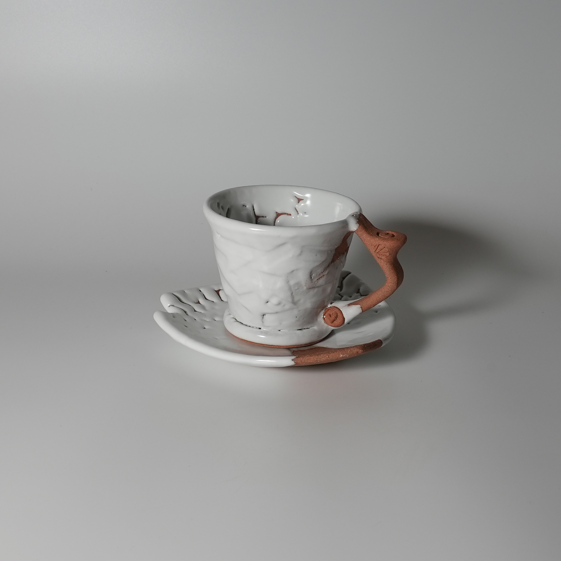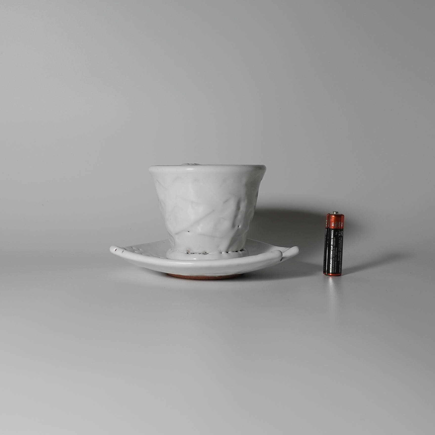 White hagi coffee cup and saucer made by Tairei Tokimatsu. Hagi yaki Japanese ceramic.