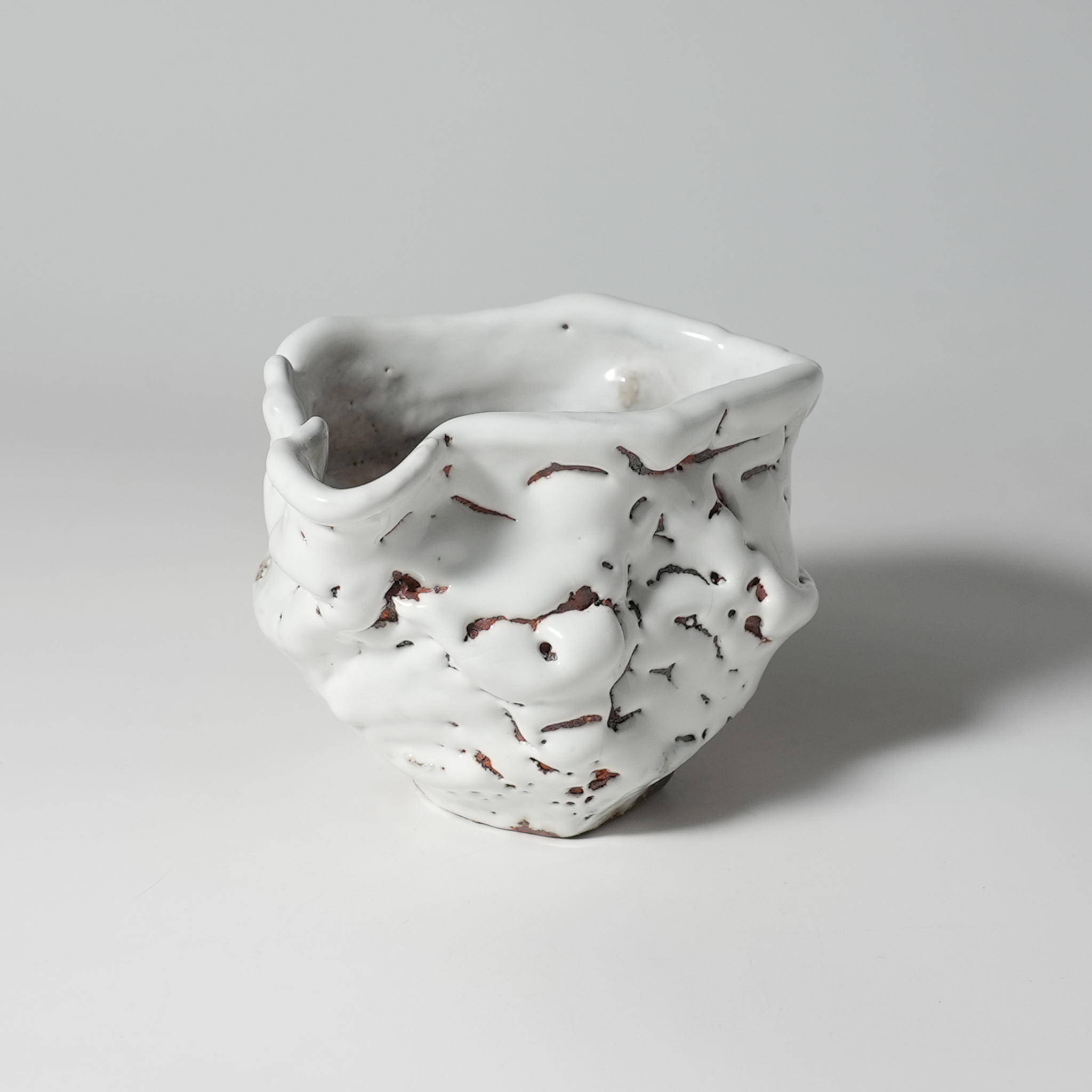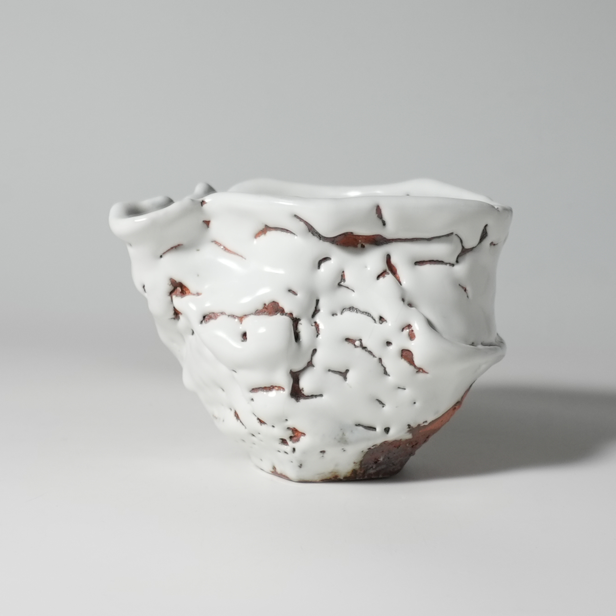 White Katakuchi Lipped bowl, Tairei Tokimatsu. Hagi yaki Japanese ceramic.