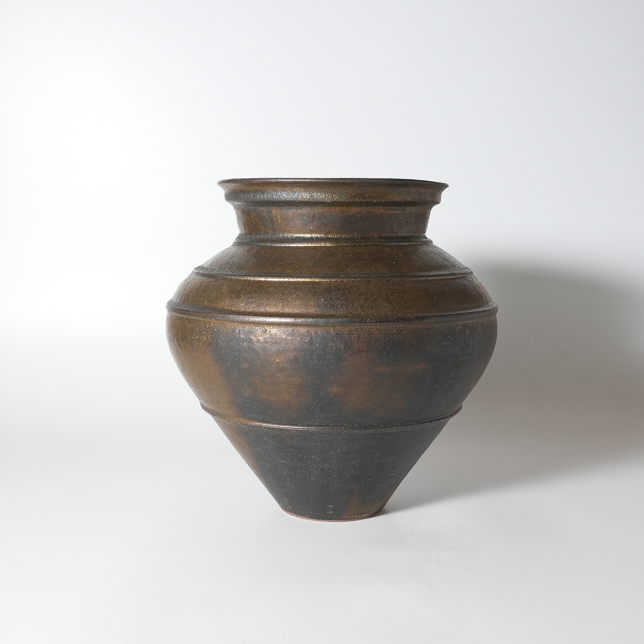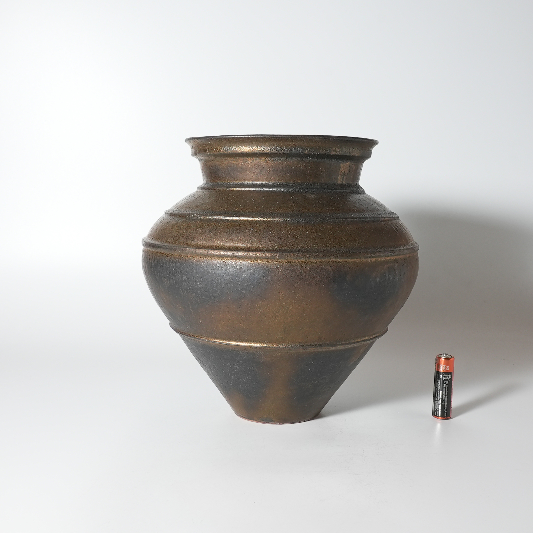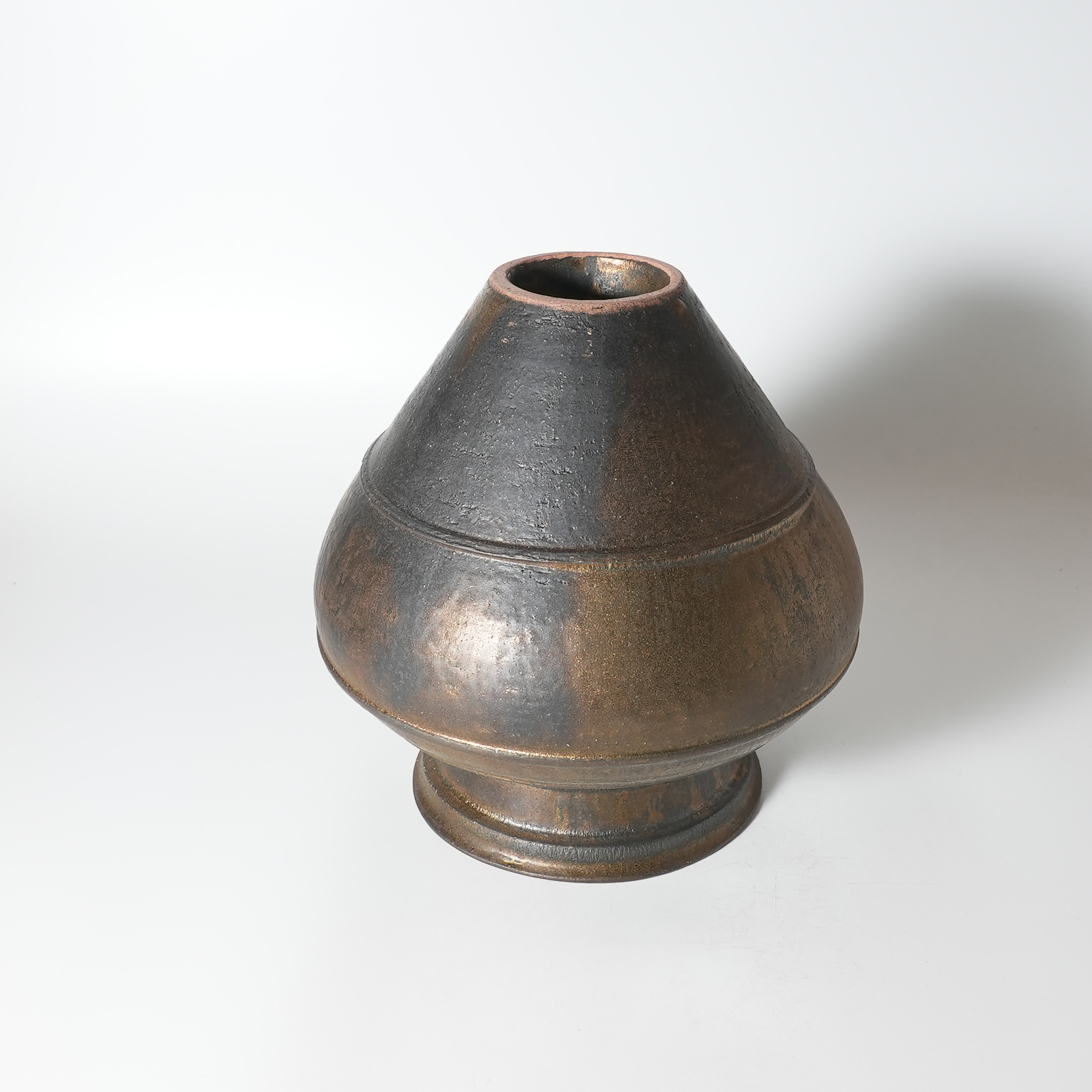 Flower vase bronze, Tairei Tokimatsu. Hagi yaki Japanese ceramic.