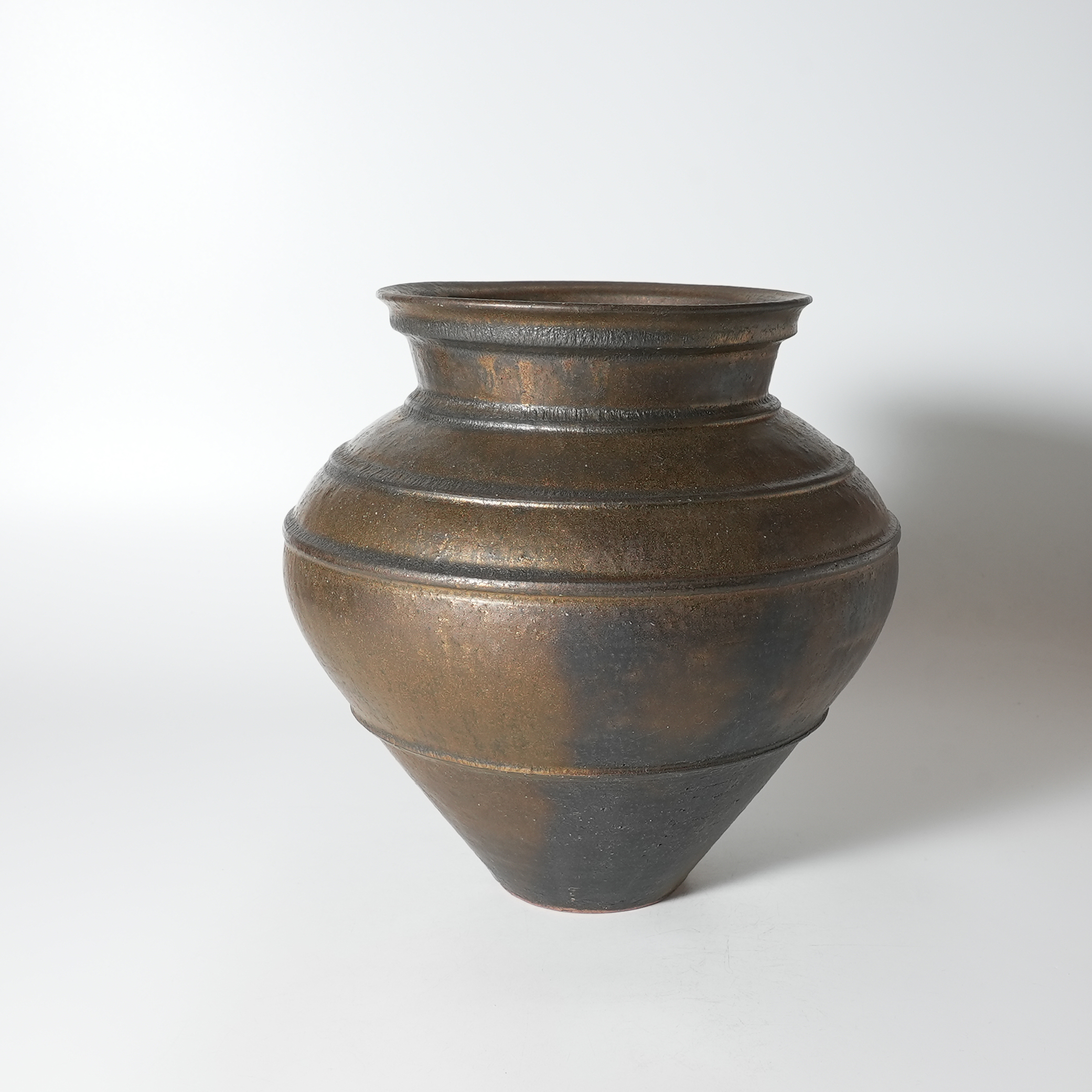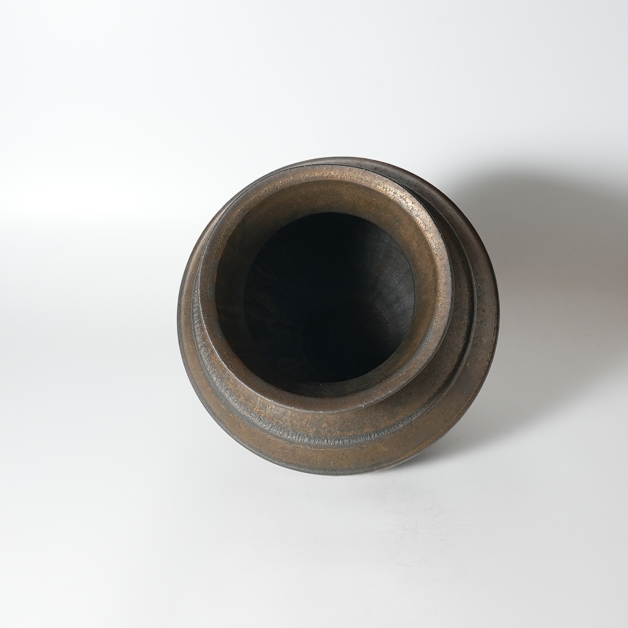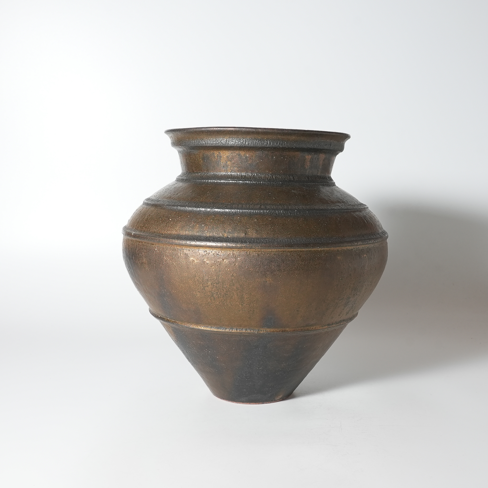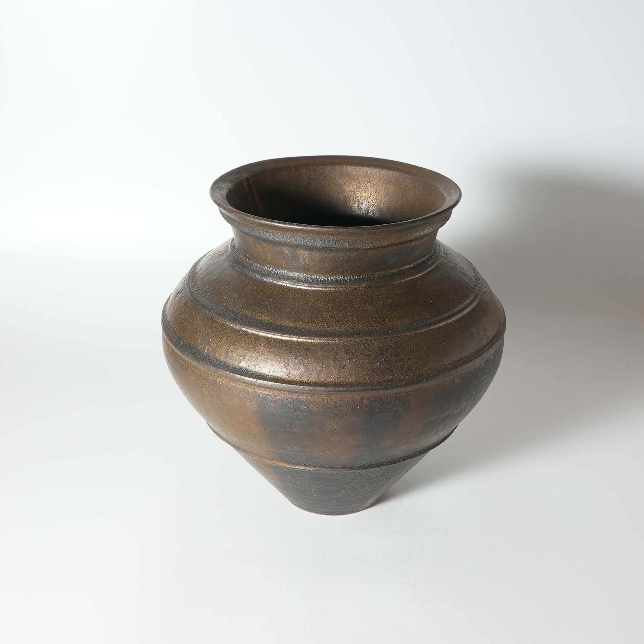 Flower vase bronze, Tairei Tokimatsu. Hagi yaki Japanese ceramic.