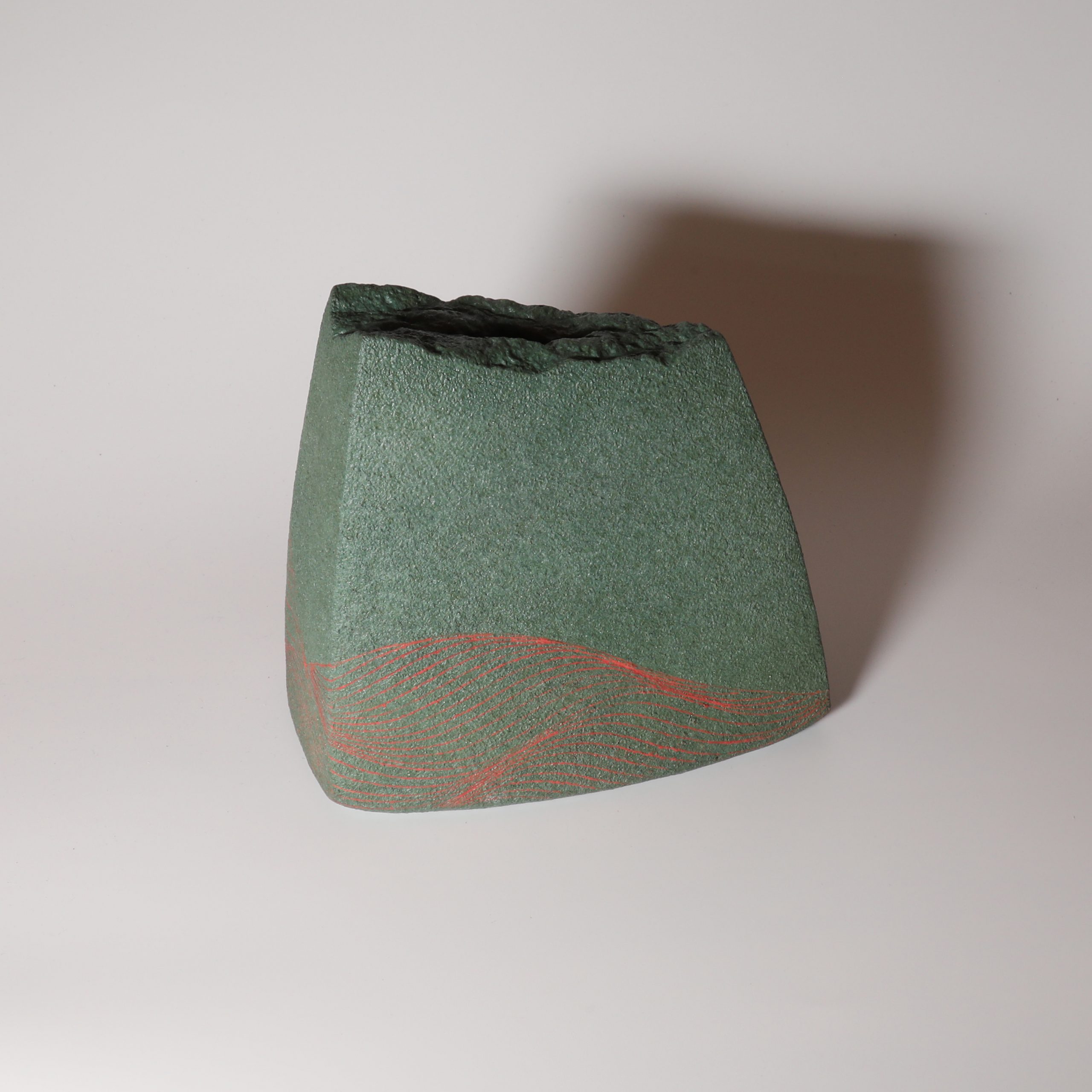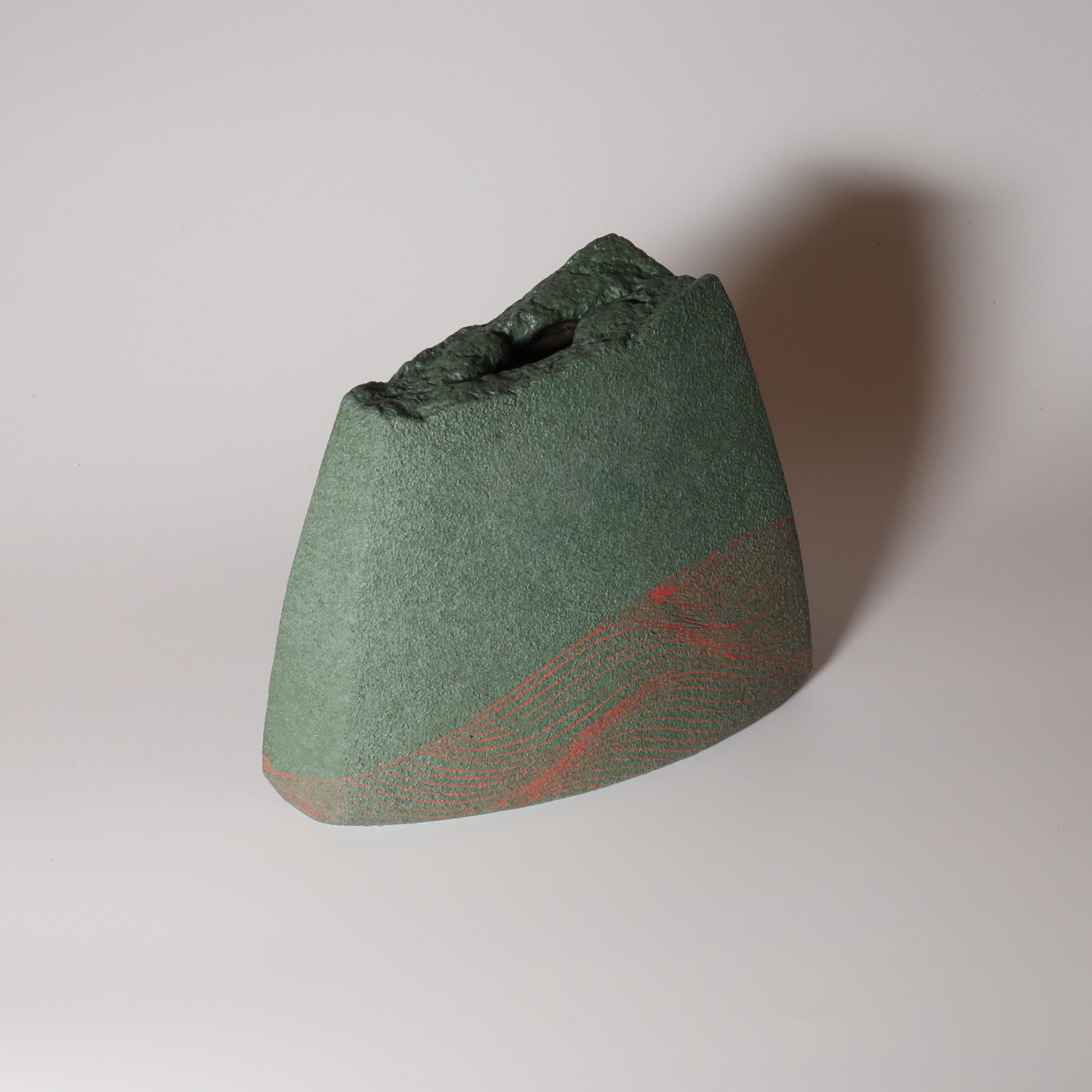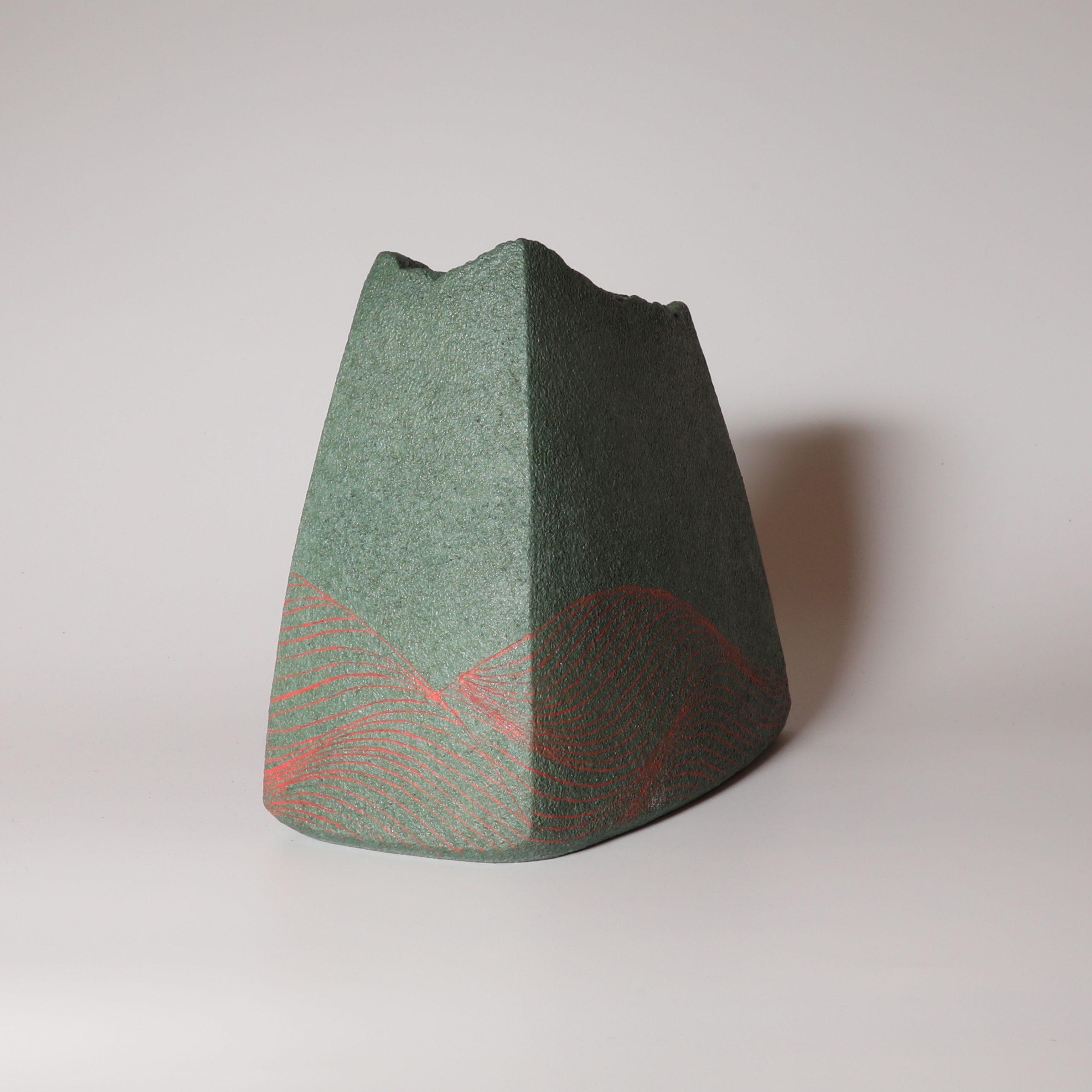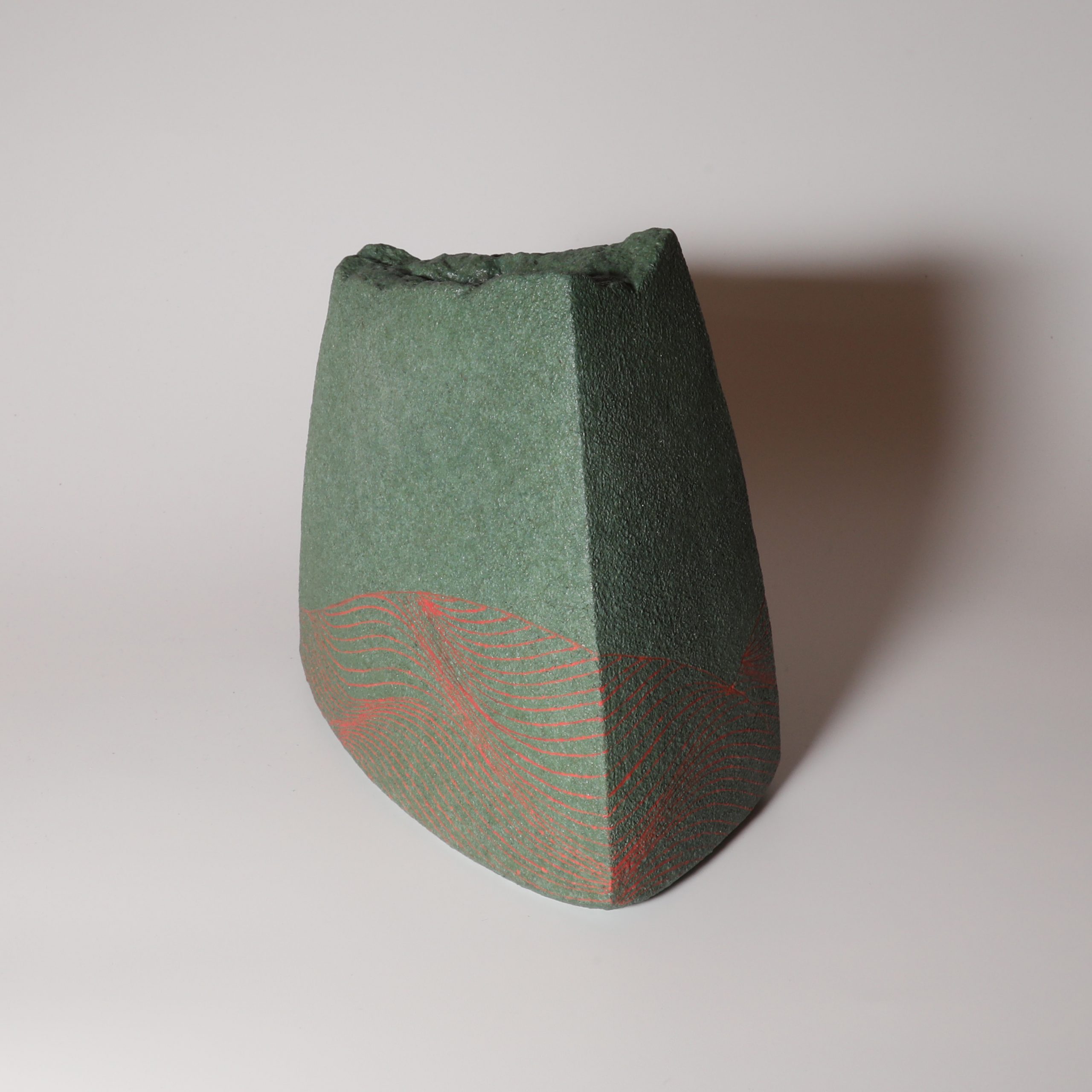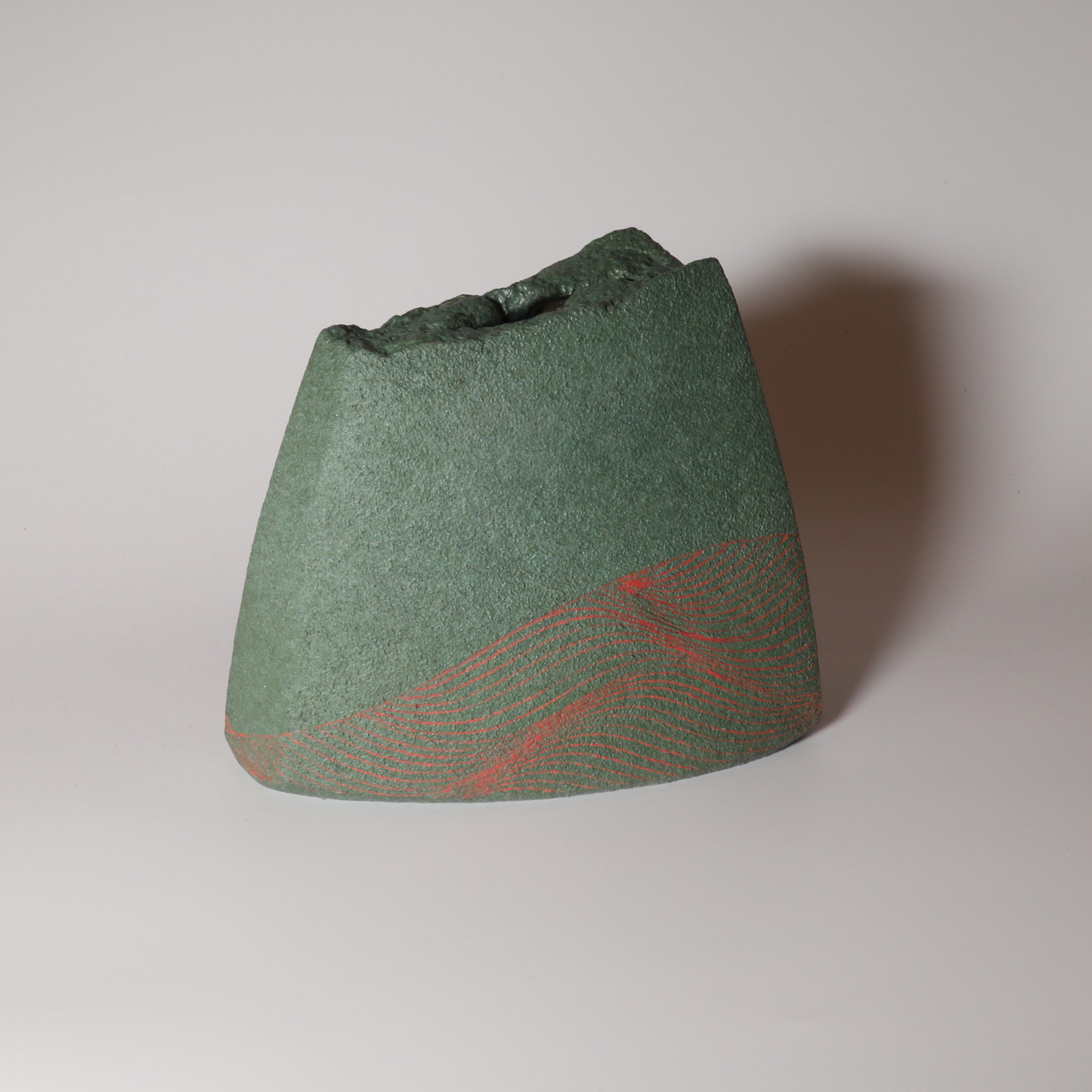 Wave line Flower vase made by Atsuyuki Ueda. Hagiware.
