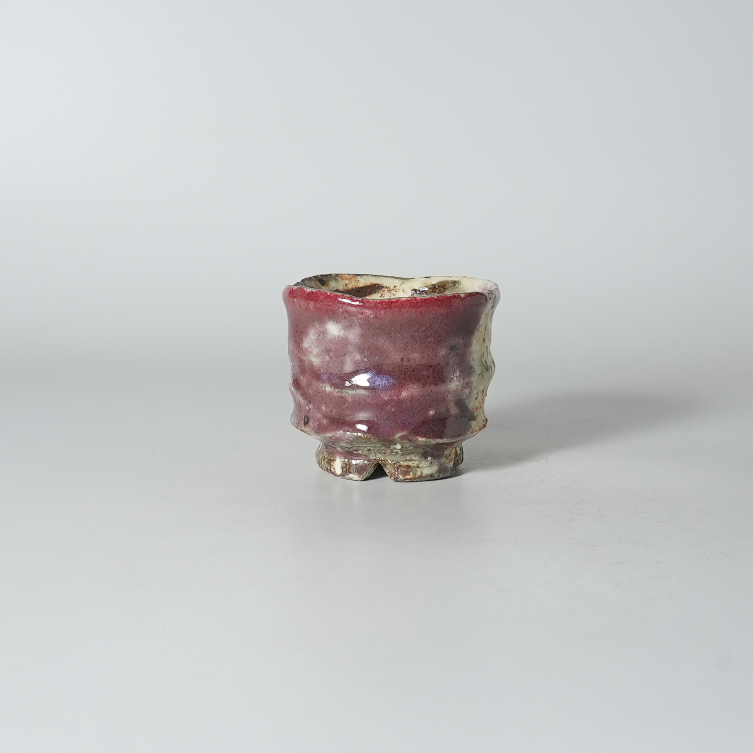 Ash glaze shinsha red guinomi sake cup with wooden box. Keita Yamato. Hagiyaki.Sold Out