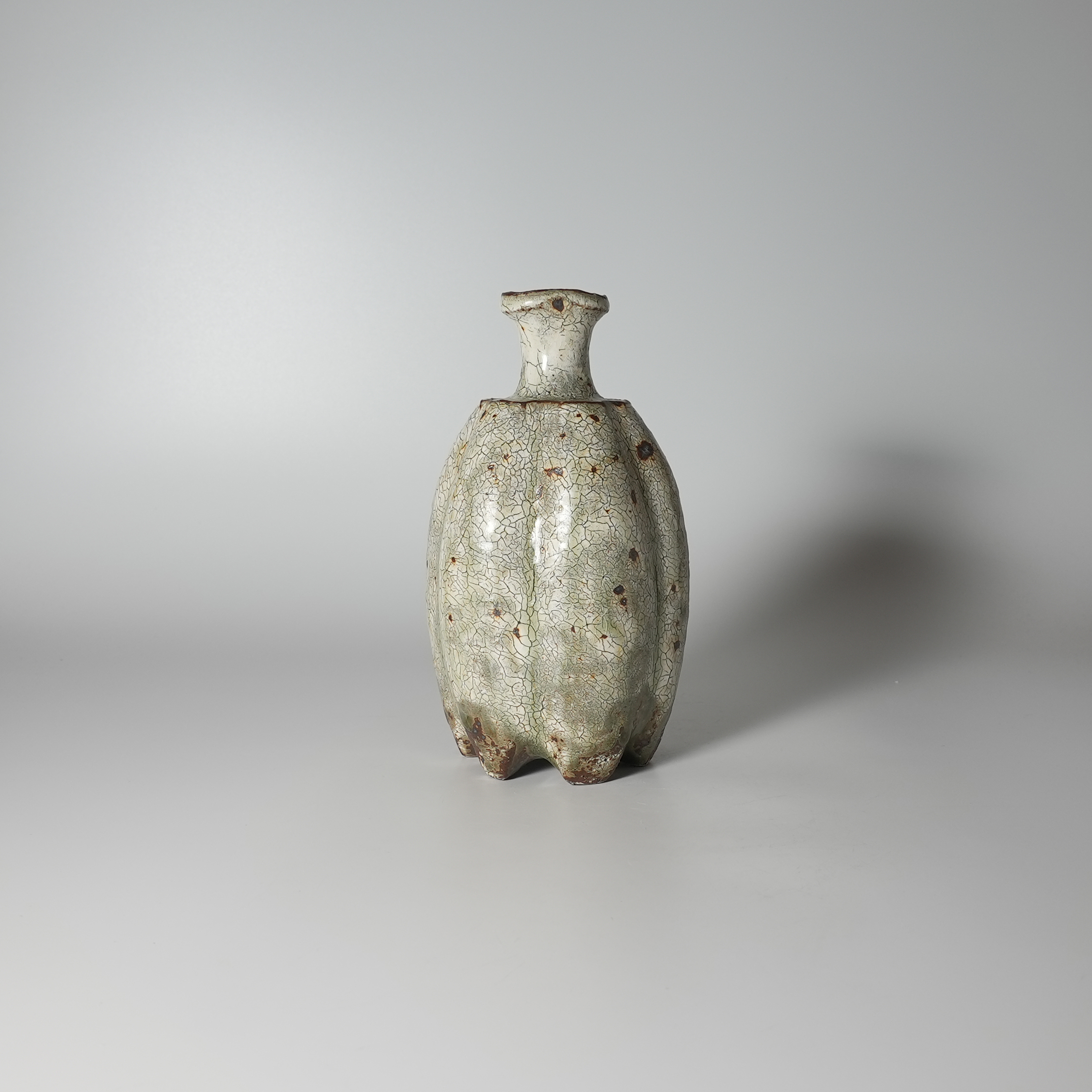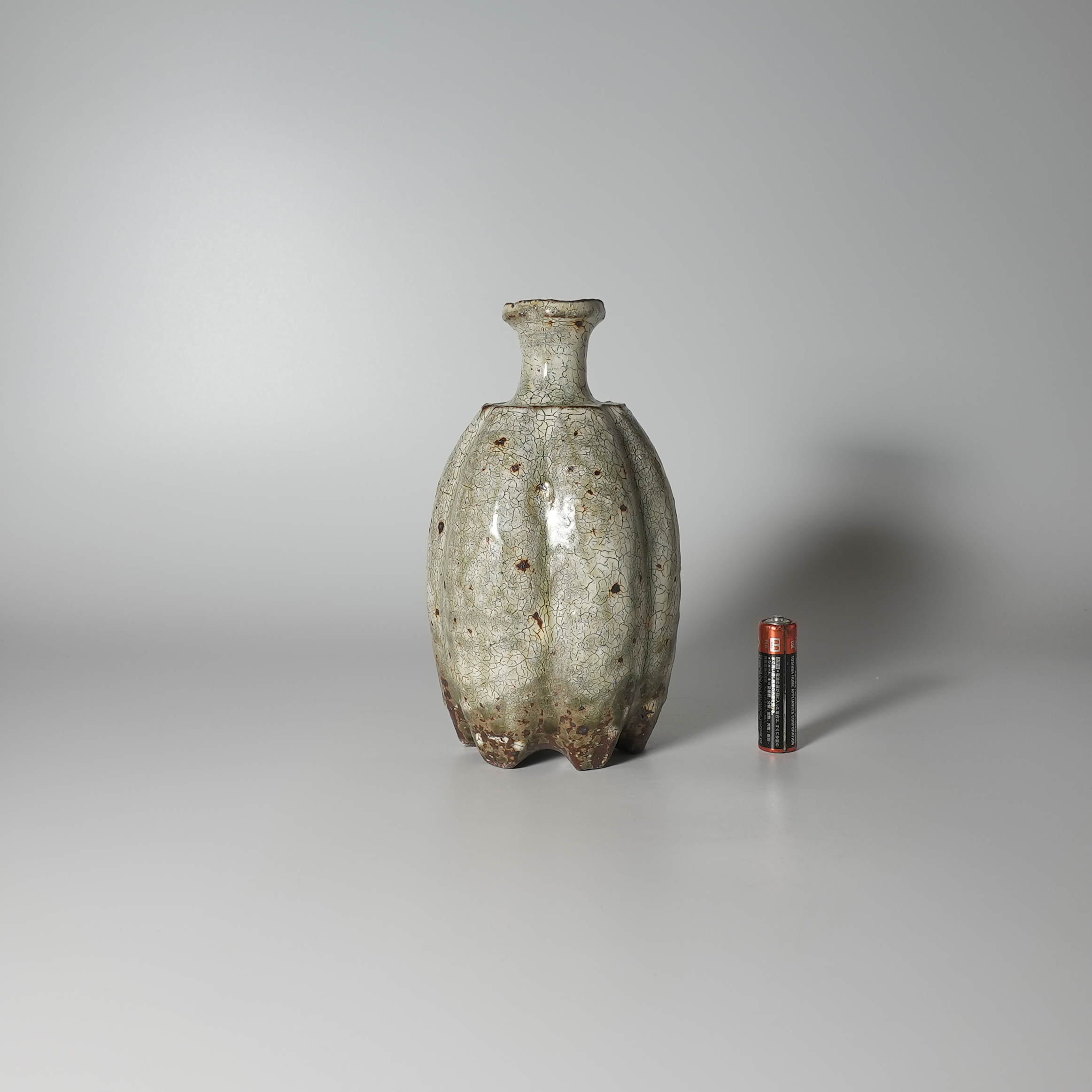 Ash glaze hibi kohiki Tokkuri sake bottle with wooden box. Kiyoshi Yamato.Sold Out