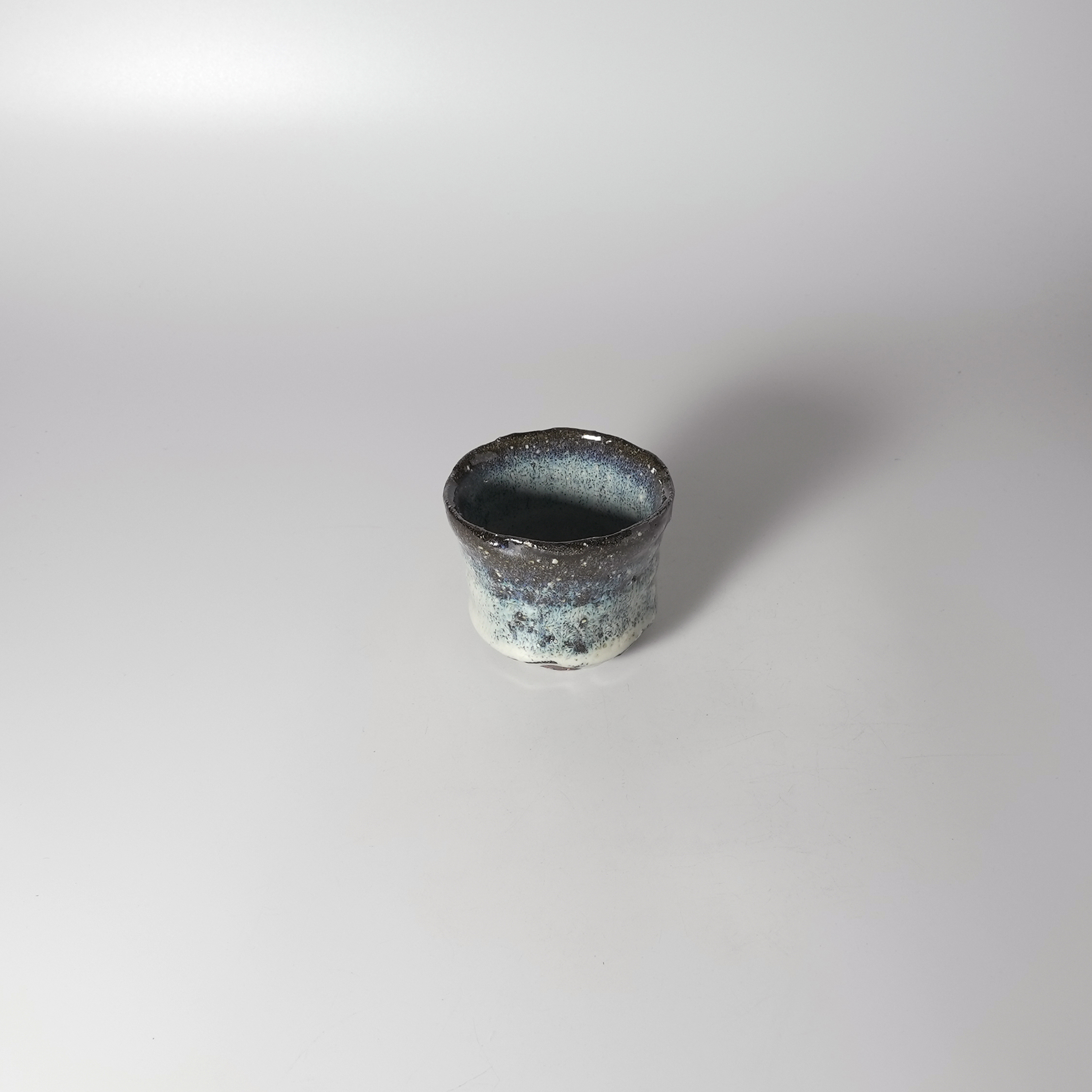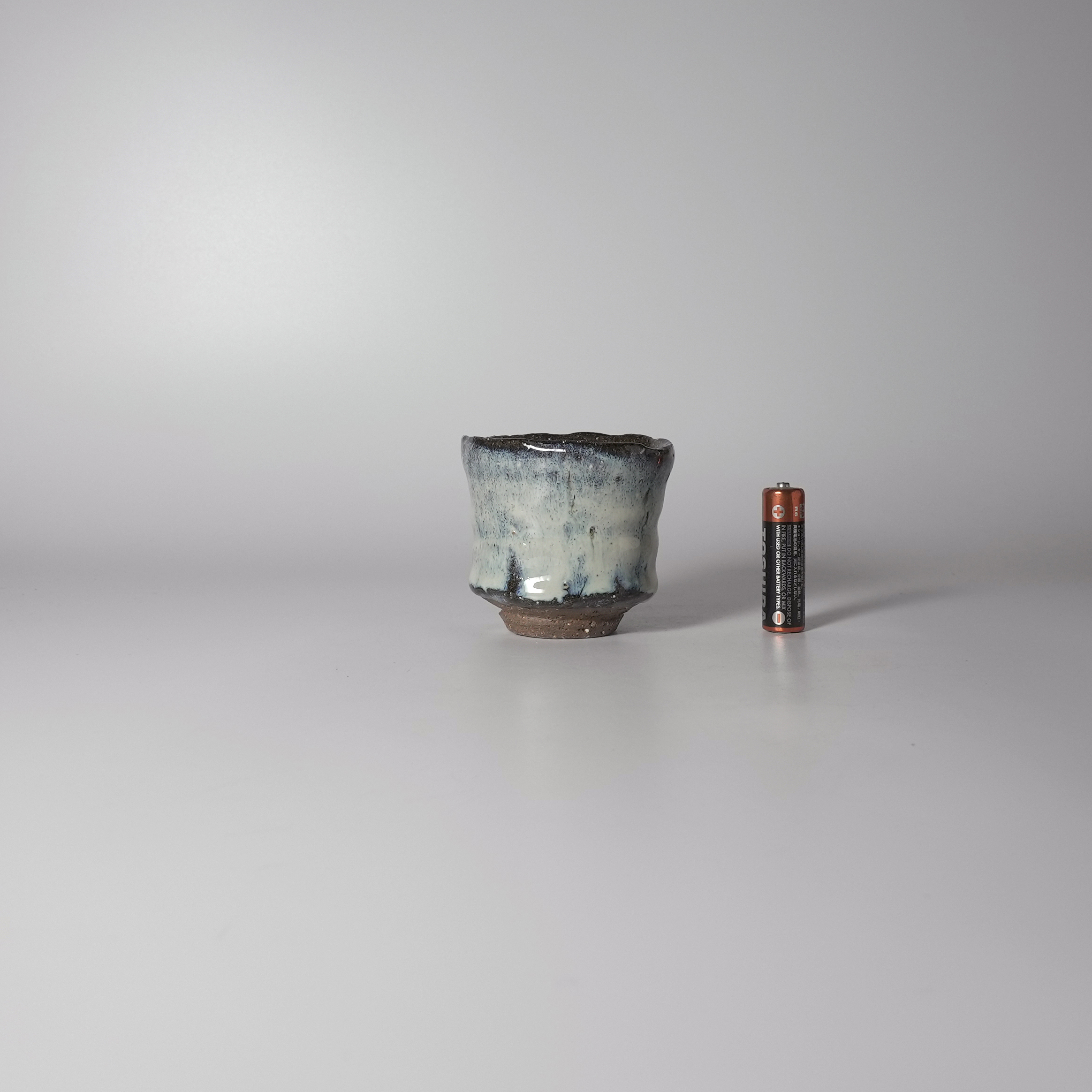 Aohagi guinomi sake cup, Kiyoshi Yamato with wooden box. Hagi ware.