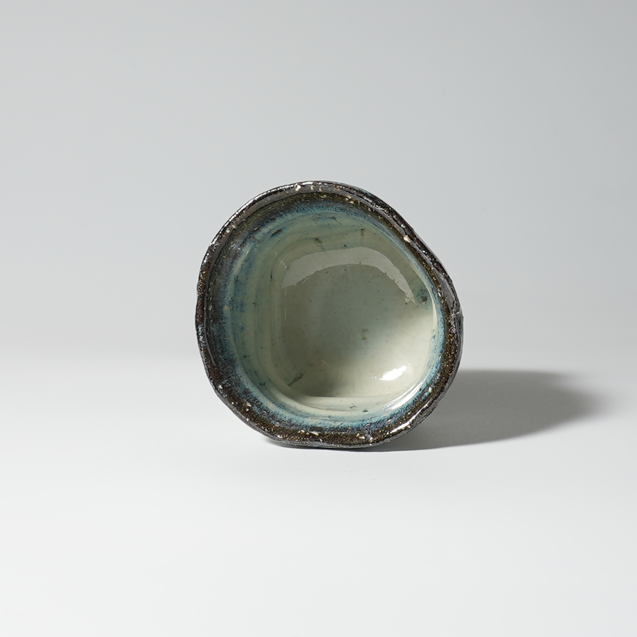 Aohagi guinomi sake cup, Kiyoshi Yamato with wooden box. Hagi ware.