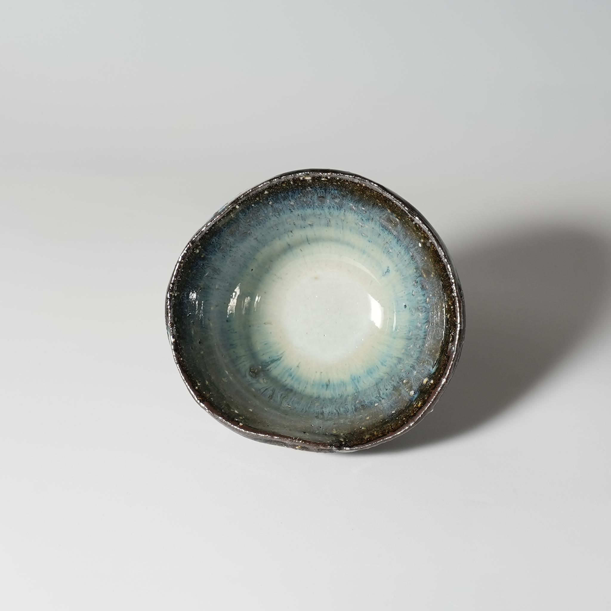 Aohagi guinomi sake cup, Kiyoshi Yamato with wooden box. Hagi ware.