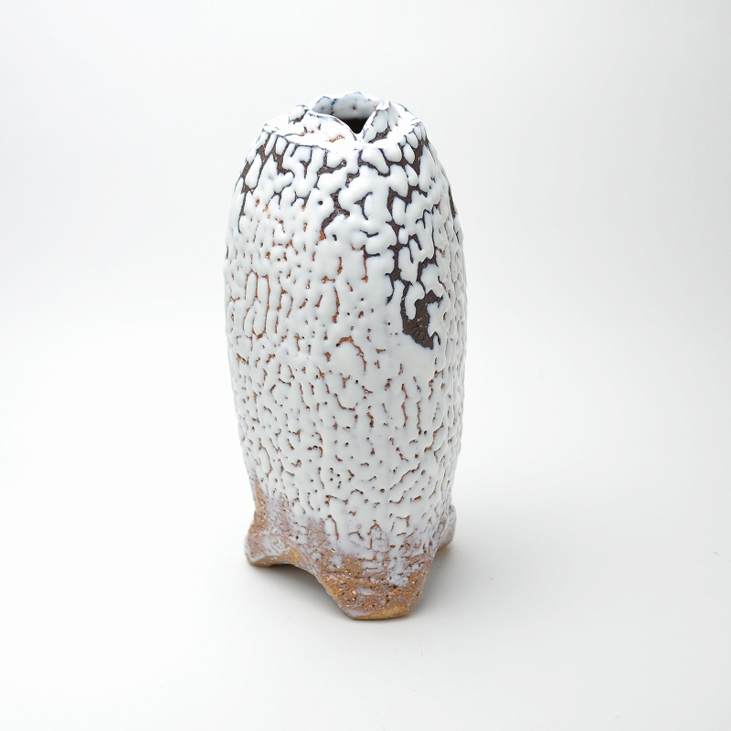 Japanese traditional ceramic Hagi ware.Hagi onihagi sanpo flower ikebana vase made by Kiyoshi Yamato. Hagiyakiya