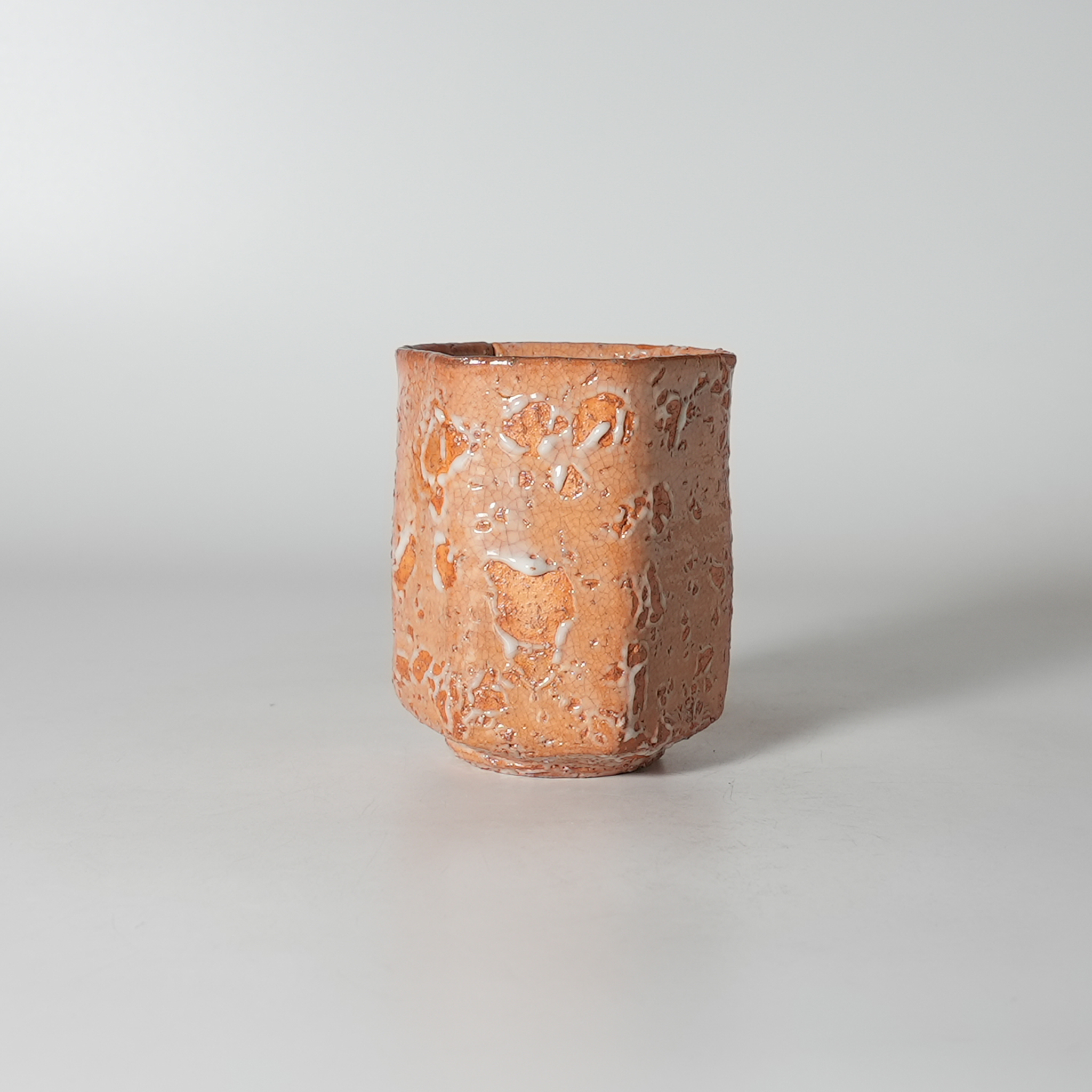 Hagi Rokkaku phexagon Yunomi teacup, Touri Yoshino. Hagi yaki.
