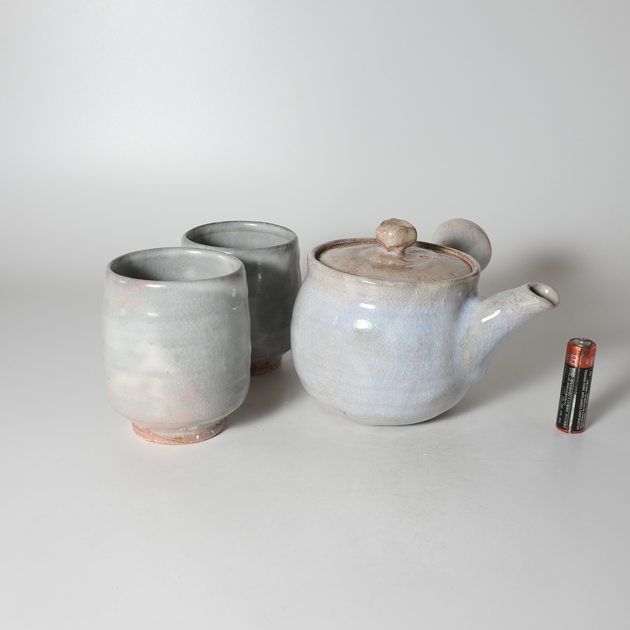 急須:幅16.3cm,高さ10.2cm 湯呑L:径7.5cm,高さ9cm, 湯呑S:径7.4cm,高さ8.5cm
