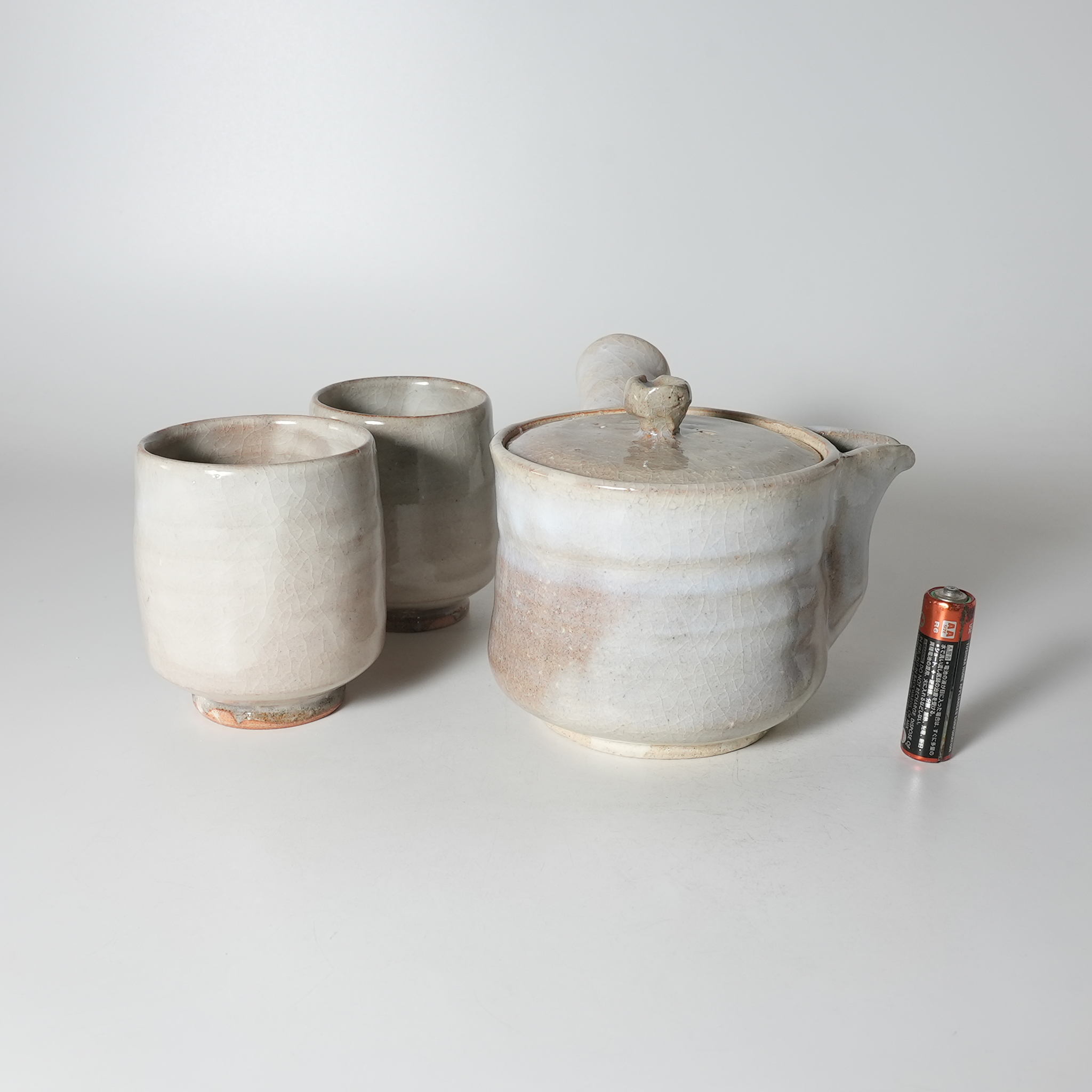 急須:幅6.7cm,高さ10.5cm 湯呑L:径7.4cm,高さ8.5cm, 湯呑S:径6.8cm,高さ8.1cm