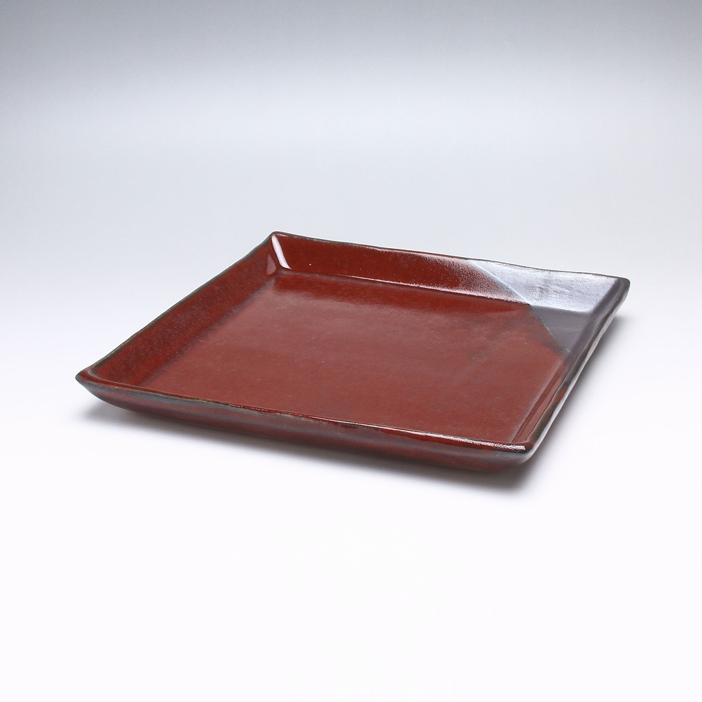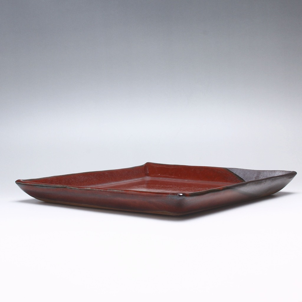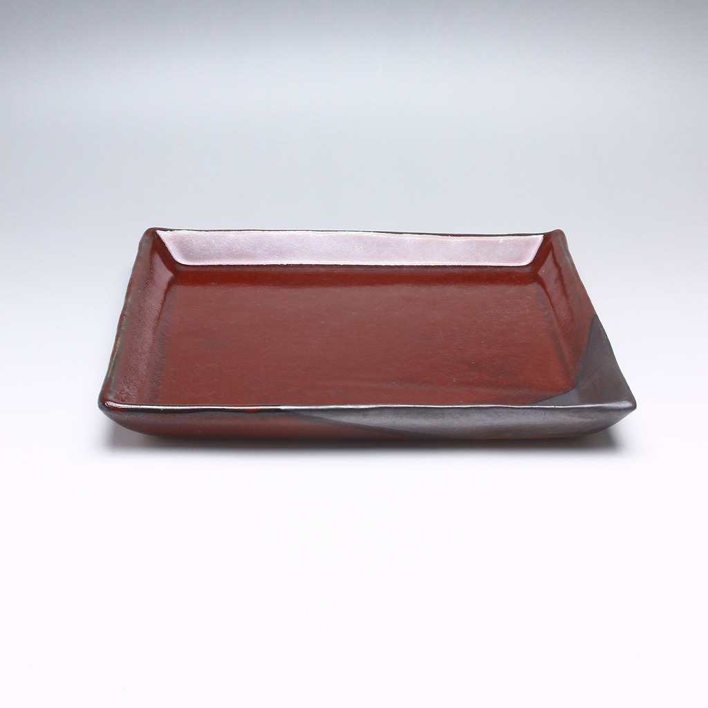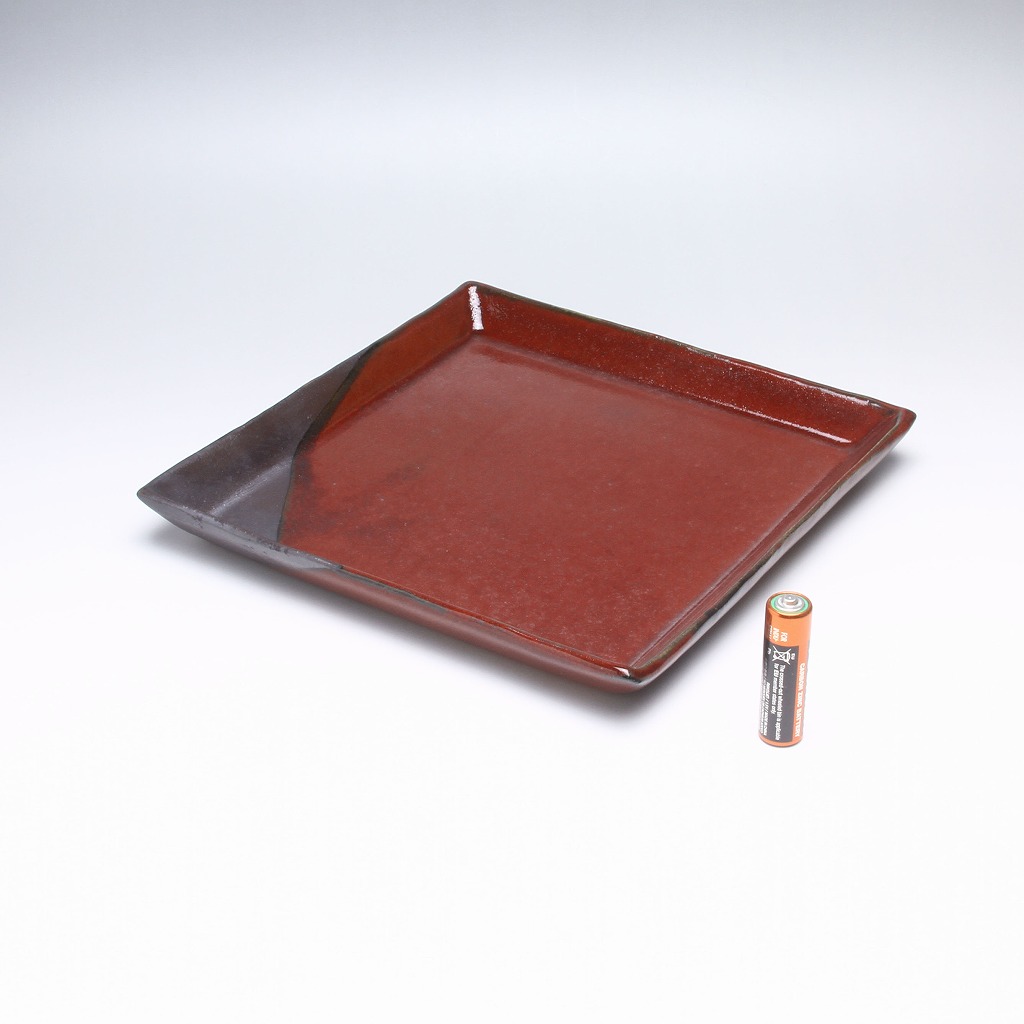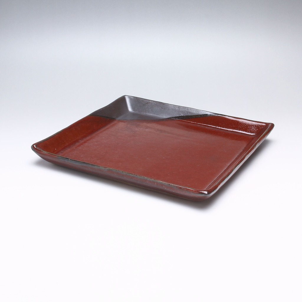 萩焼 緑栄窯 松野創平作 黒彩紅四方皿